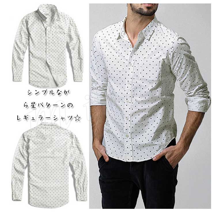 メンズシャツカジュアルシャツ長袖星柄レギュラーカジュアルリラックススタイリッシュ人気