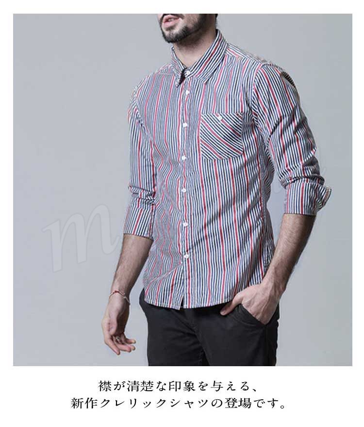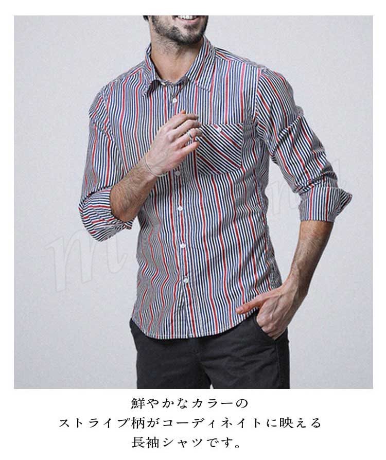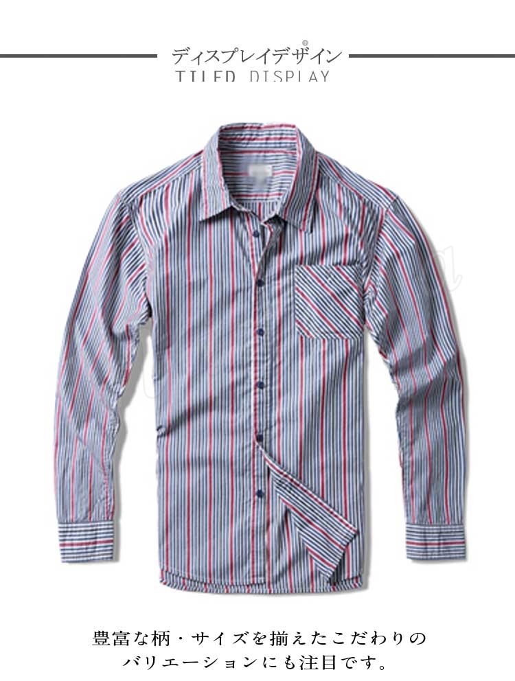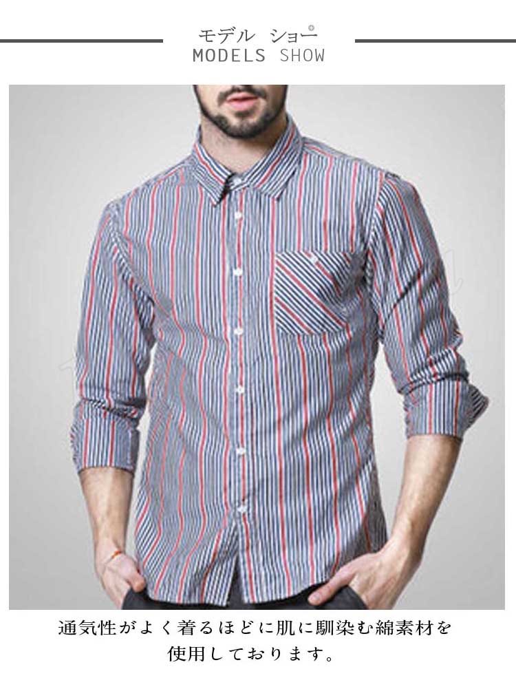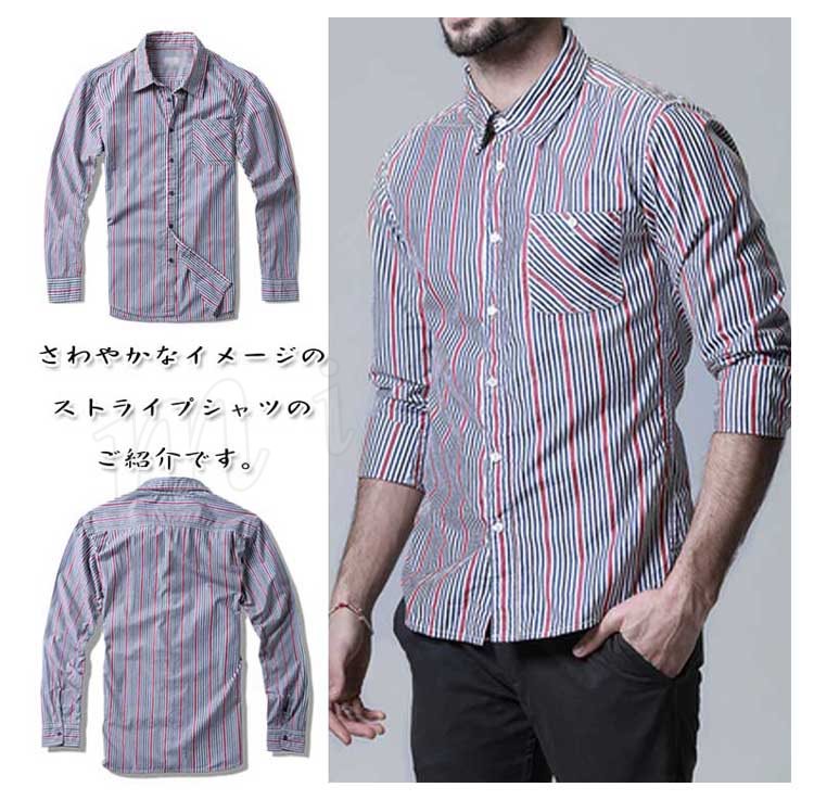 メンズシャツスリムシルエット長袖ストライプシャツお洒落ストライプシャツメンズ長袖シャツメンズ