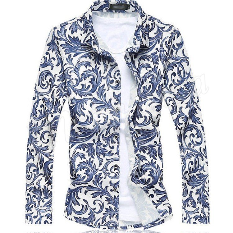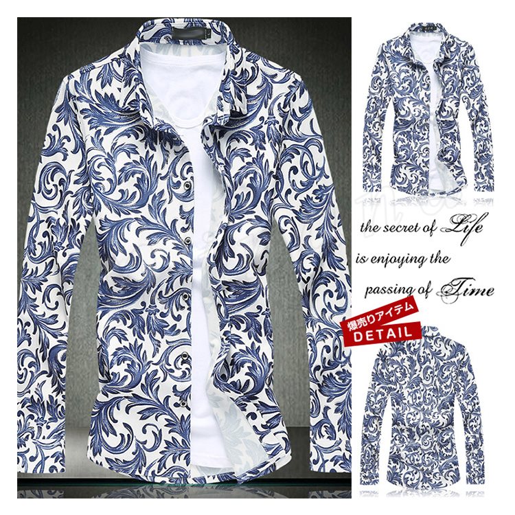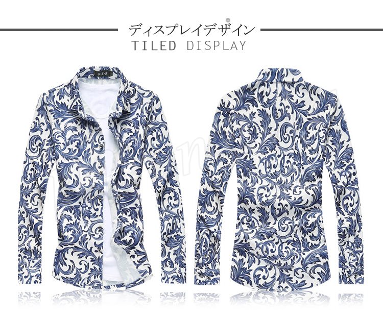 メンズ アロハシャツ 長袖シャツ ワイシャツ 和柄 花柄 スリム カジュアルシャツ ワイシャツ 大きいサイズ 秋物