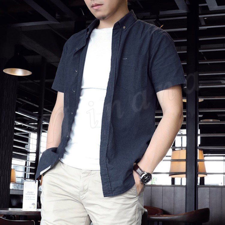 メンズ半袖シャツボタンダウンカジュアルシャツアメカジオックスフォード無地胸ポケットおしゃれ中綿おしゃれ