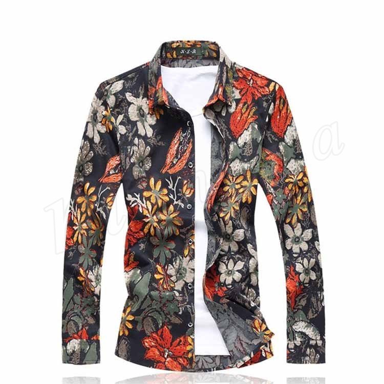 アロハシャツ カジュアルシャツ メンズ 長袖 花柄シャツ 和柄 スリム ワイシャツ 大きいサイズ 秋物 父の日 ギフト