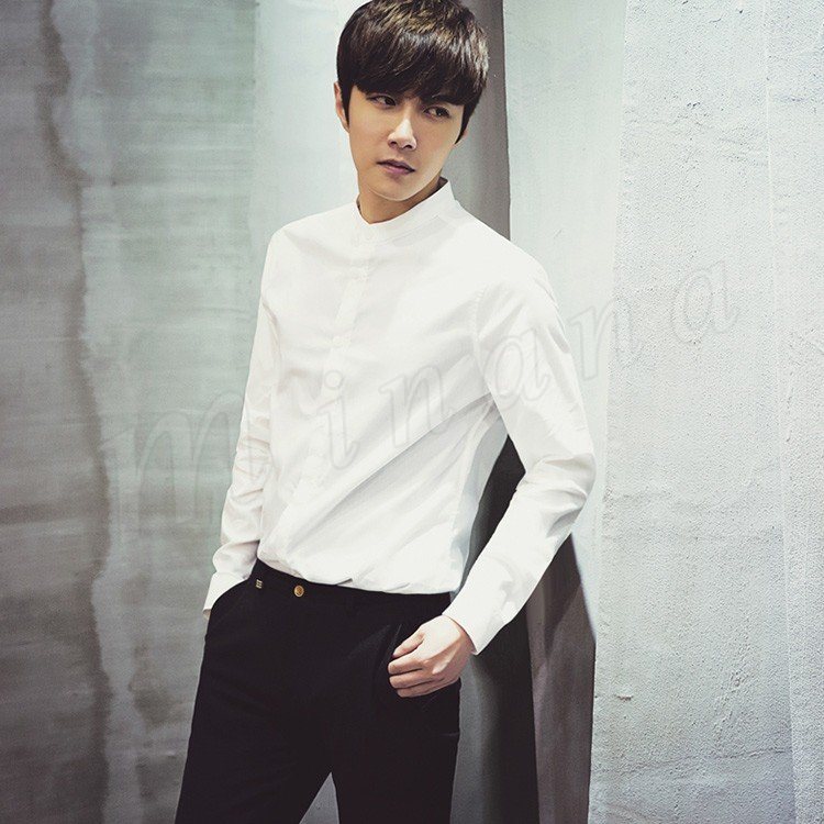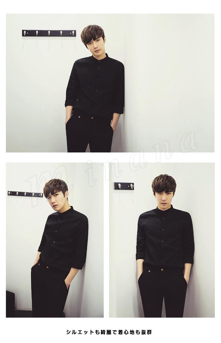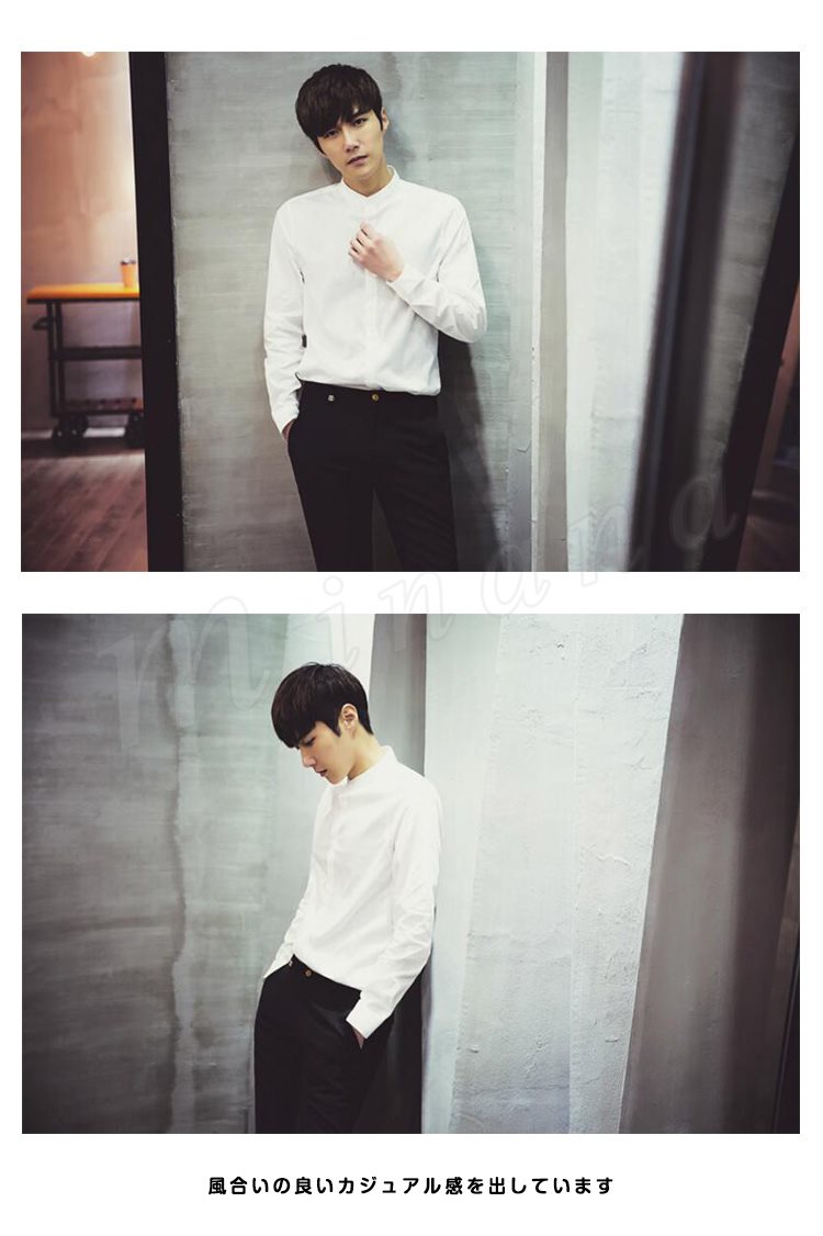 メンズシャツ長袖シャツ男性用スリムシャツカジュアルシャツメンズシャツホワイトシャツトップスコットンシャツスタンドカラートップス