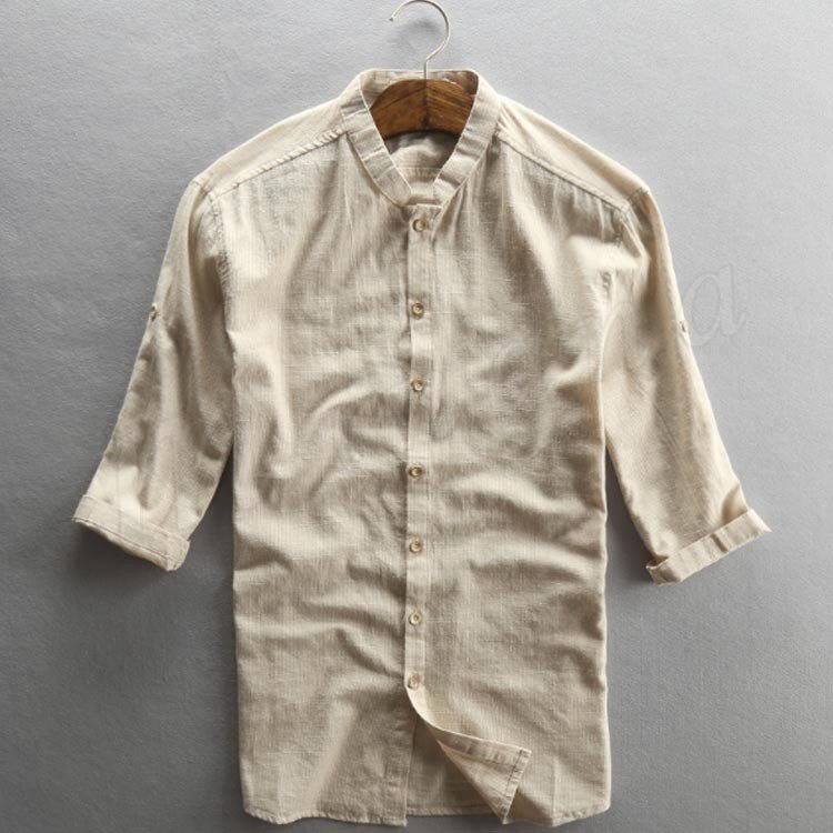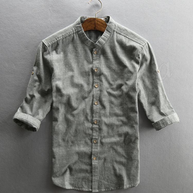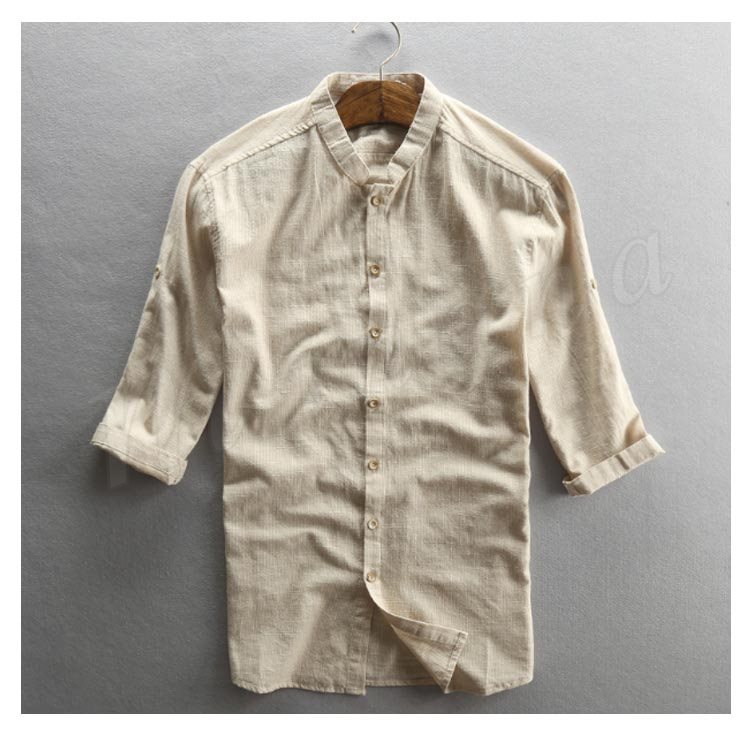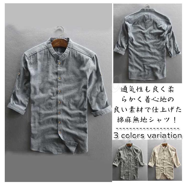 リネンシャツ 綿麻シャツ 七分袖シャツ メンズ 麻シャツ カジュアル 七分丈 リネンコットン 夏 秋 ナチュラル サマー 秋物 父の日 ギフト