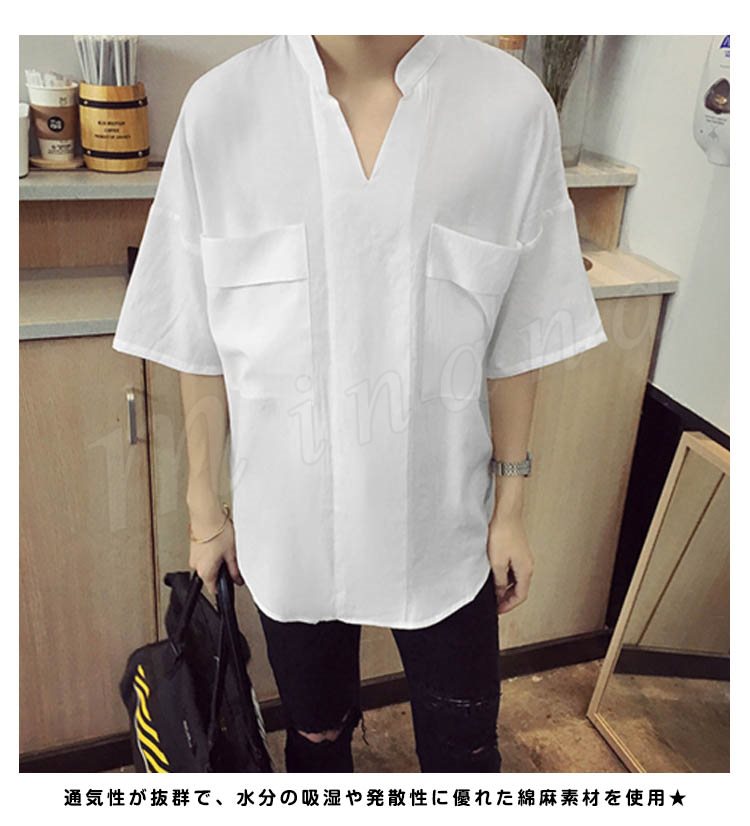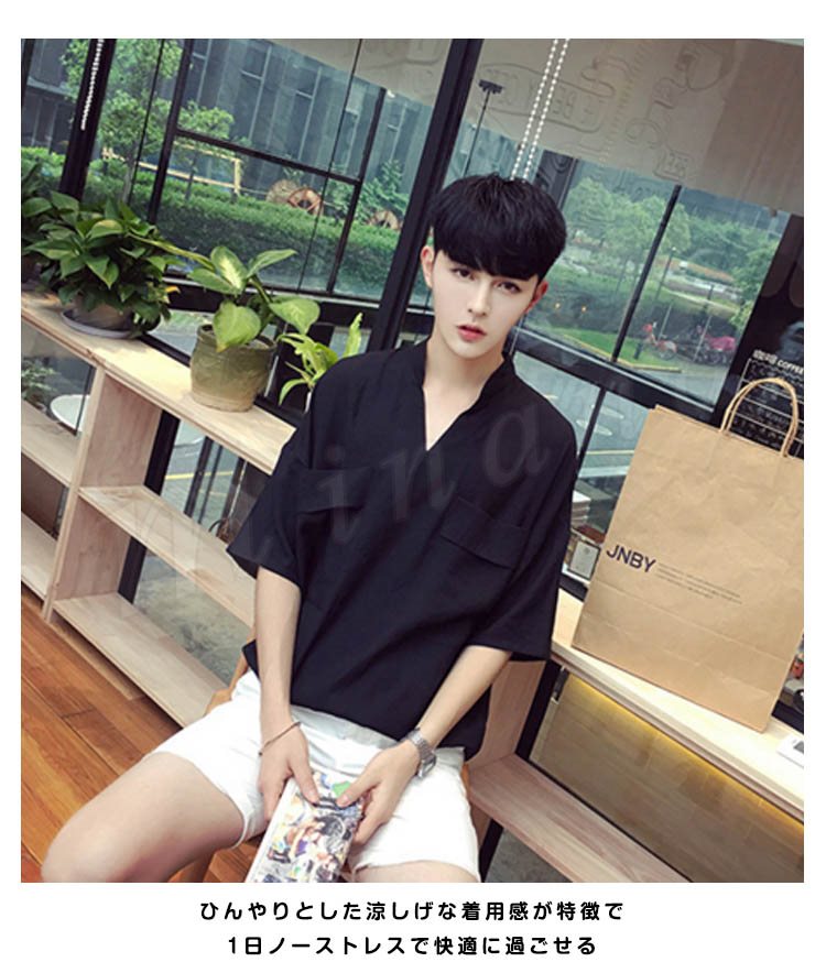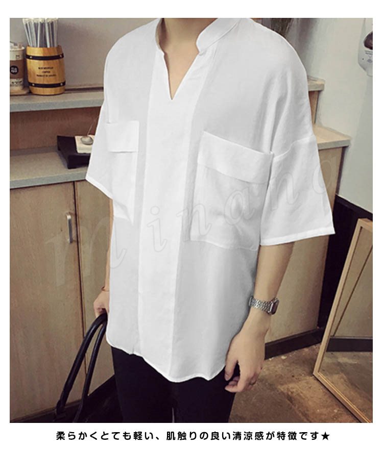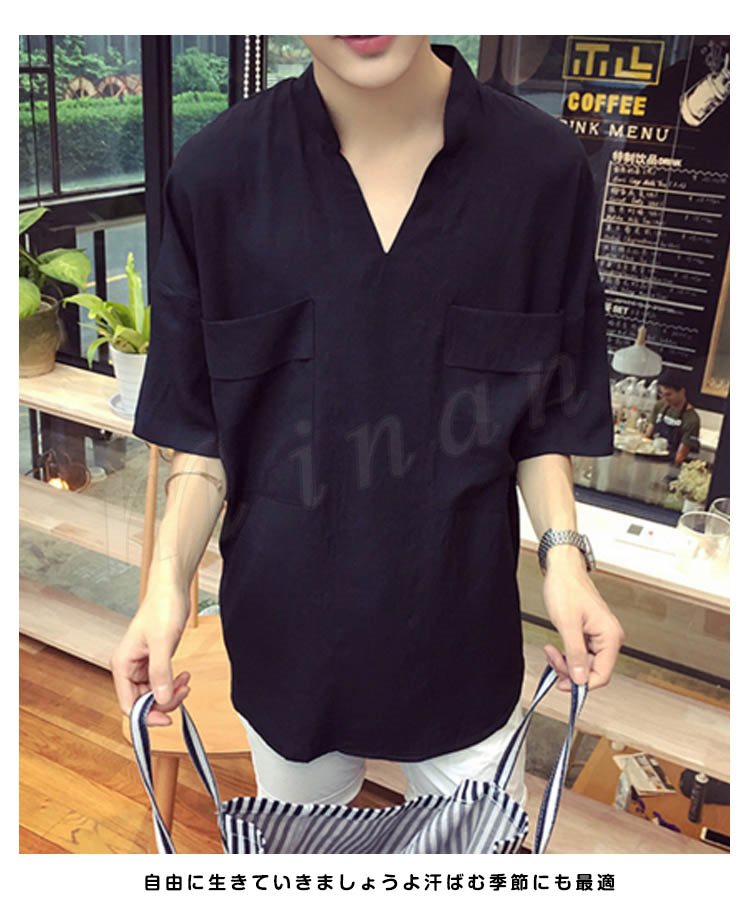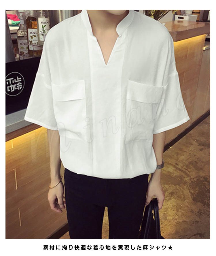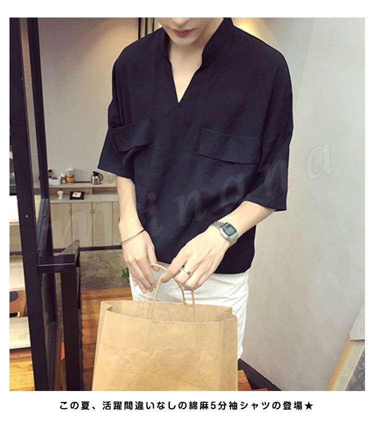 シャツリネンシャツ5分袖メンズ綿麻夏コットン麻シャツカジュアルリネンリラックス無地薄手メンズシャツ2017夏新作