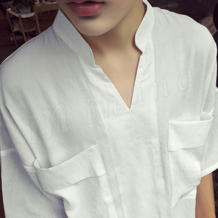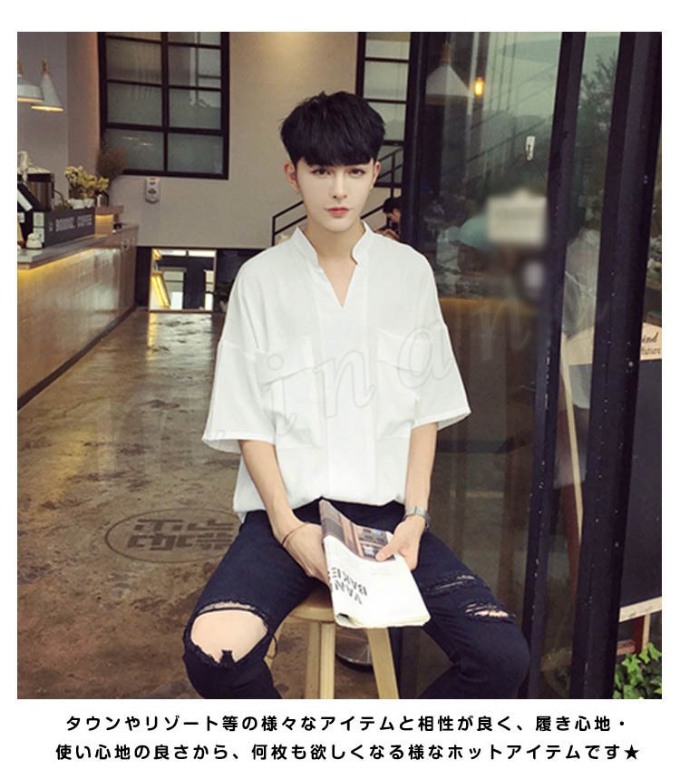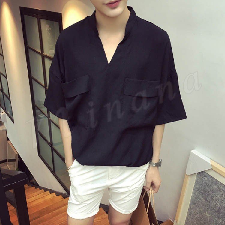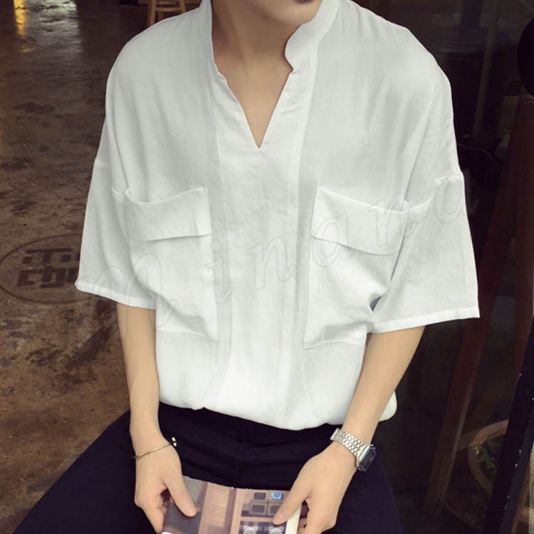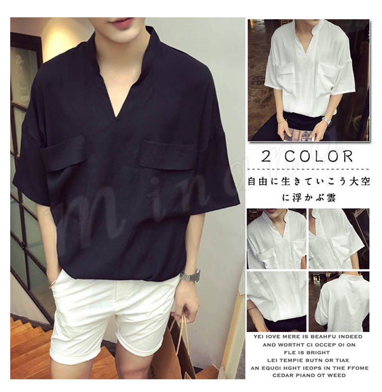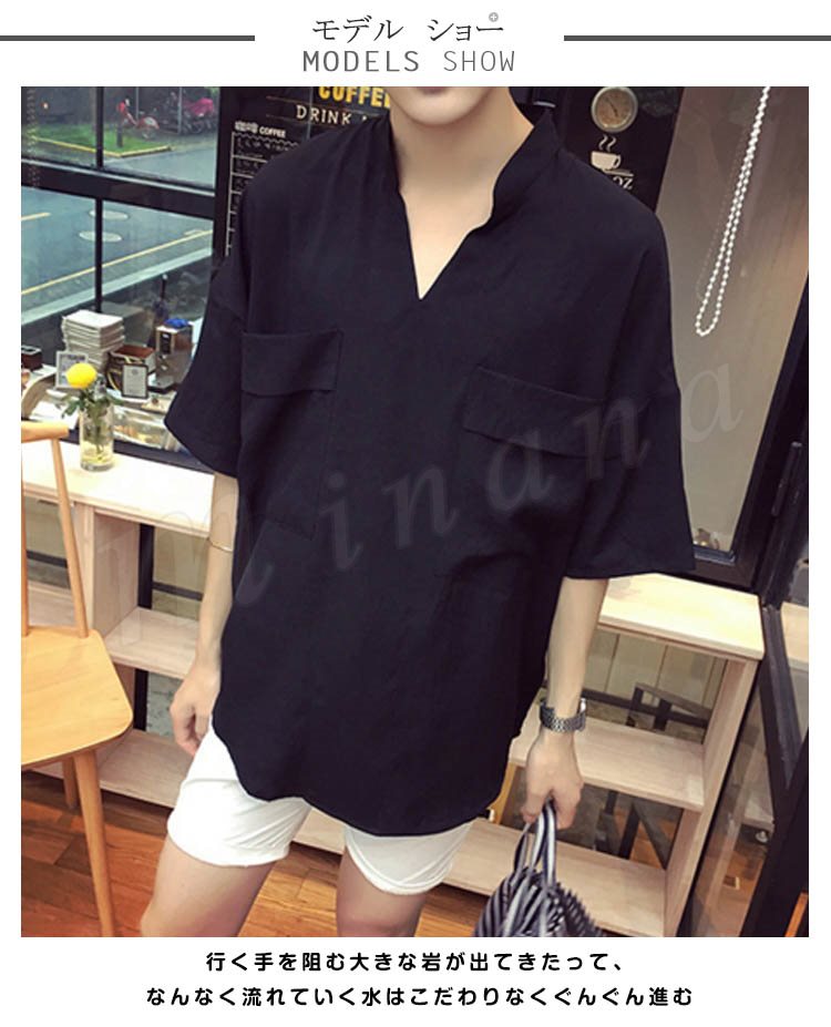 シャツリネンシャツ5分袖メンズ綿麻夏コットン麻シャツカジュアルリネンリラックス無地薄手メンズシャツ2017夏新作