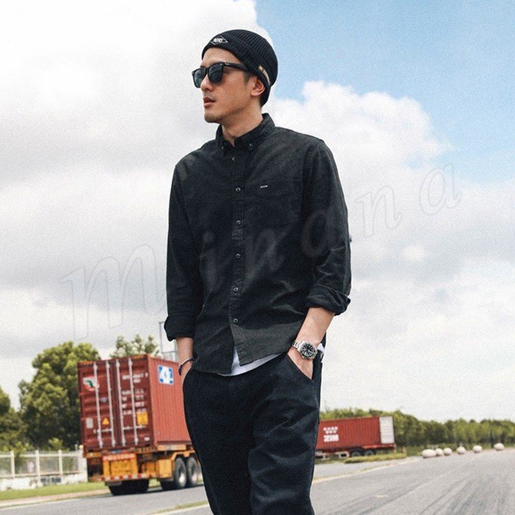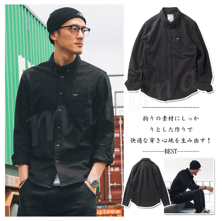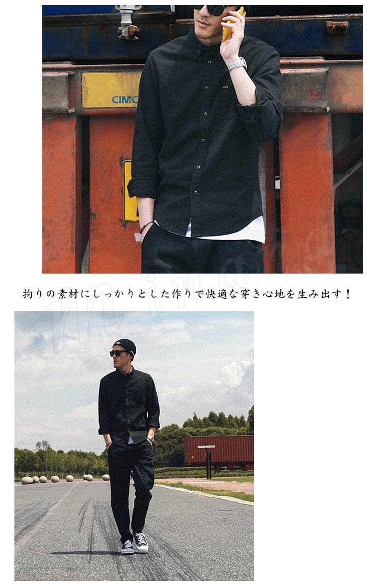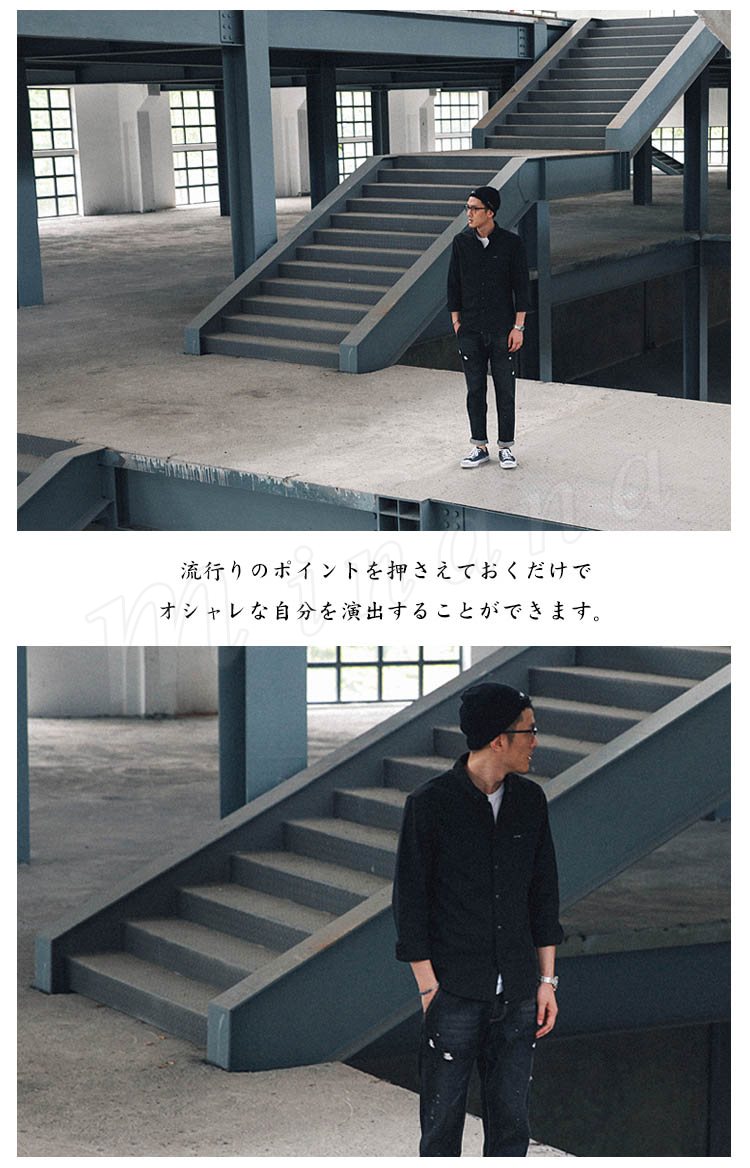 シャツ長袖メンズデニムシャツカジュアルシャツ無地ストレッチワークシャツアメカジ濃いグレーアウター