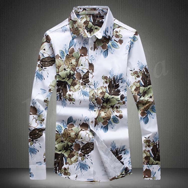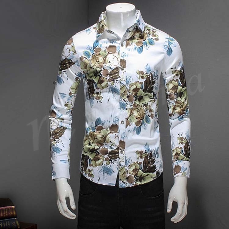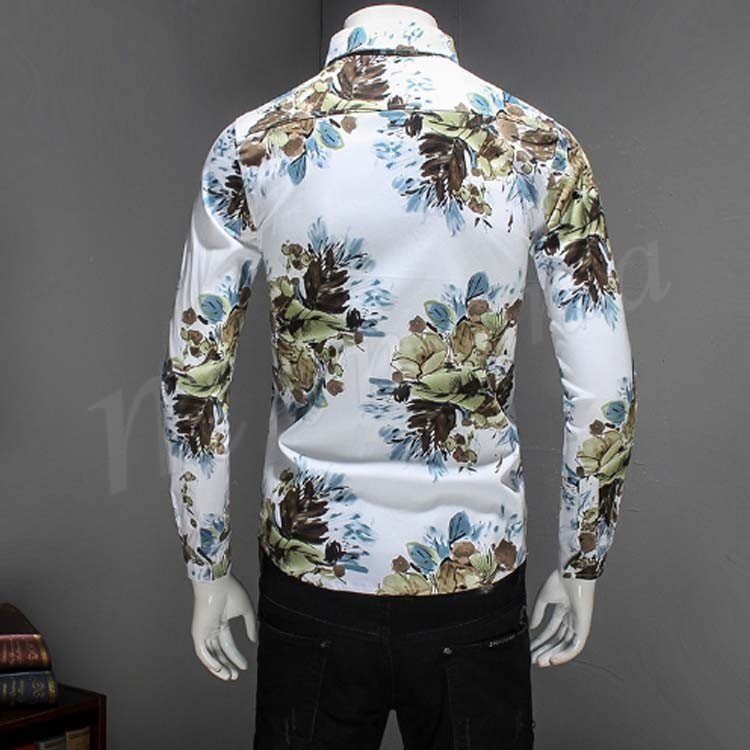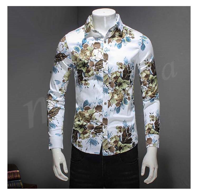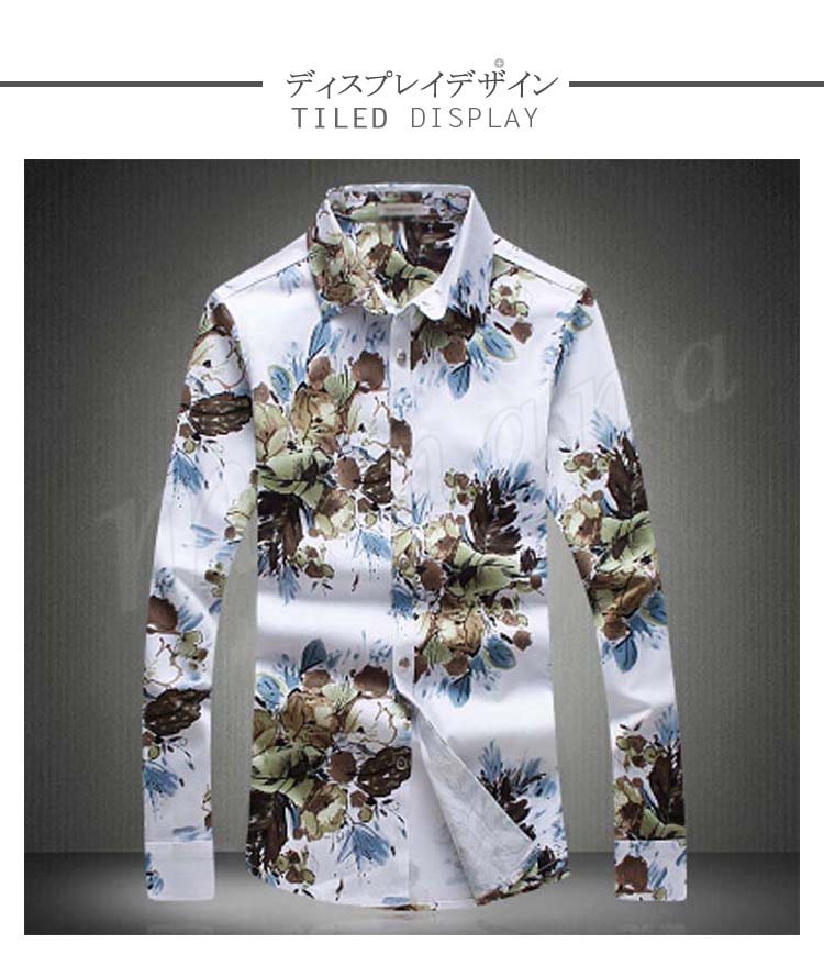 アロハシャツ カジュアルシャツ メンズ 長袖シャツ 花柄 総柄シャツ 細身 お兄系シャツ 大きいサイズ 2017秋