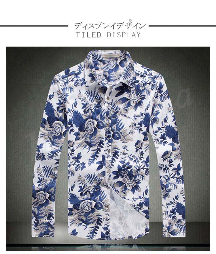 アロハシャツ カジュアルシャツ メンズ 長袖シャツ 花柄 細身 お兄系シャツ 大きいサイズ 2017秋