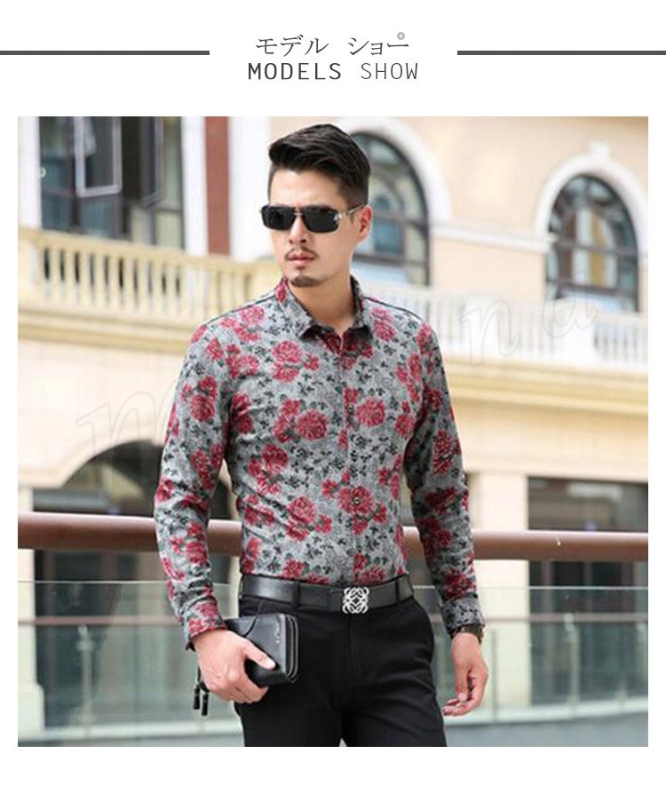 アロハシャツ カジュアルシャツ メンズ 長袖 シャツ 花柄シャツ 大きいサイズ 秋物 和柄 スリム お洒落 ワイシャツ