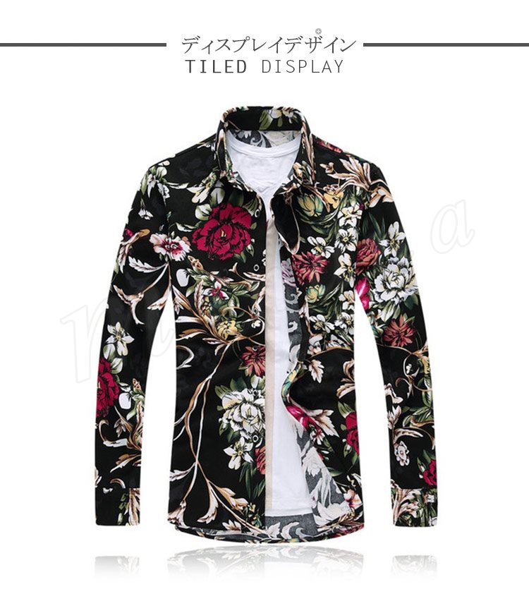 カジュアルシャツ メンズ アロハシャツ 長袖シャツ 花柄シャツ 和柄 秋物 大きいシャツ