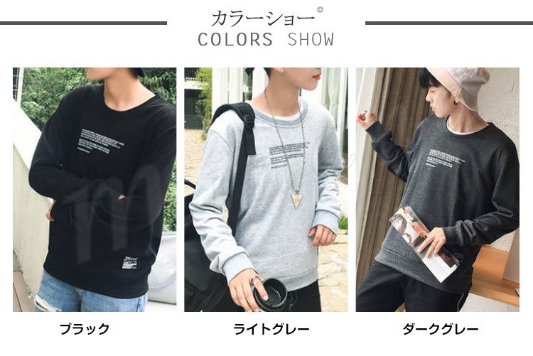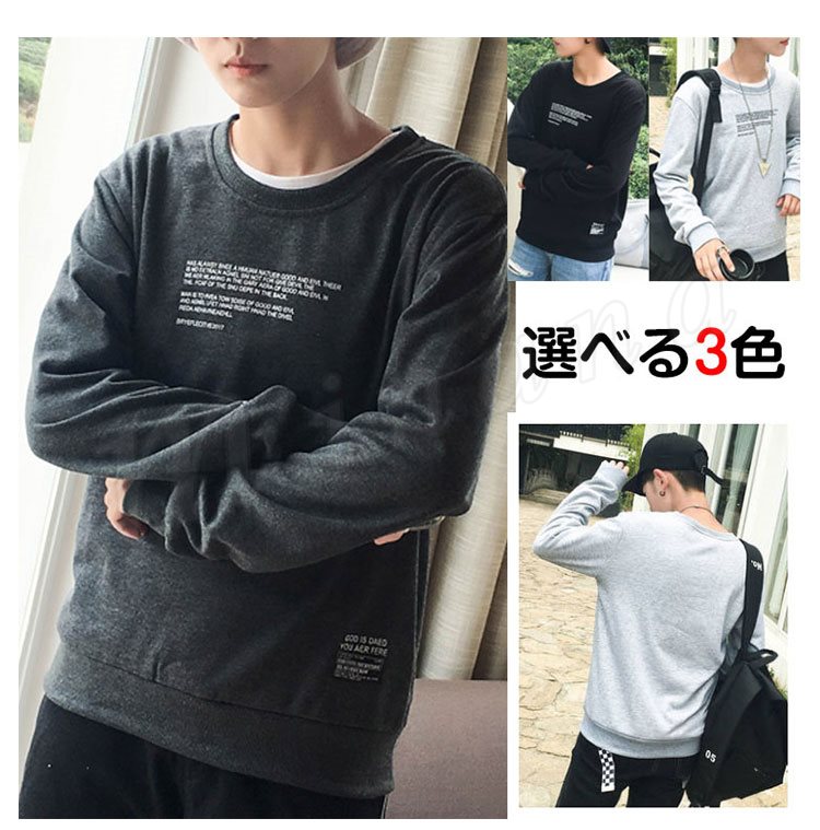 トレーナー メンズ トップス クルーネック シンプル プリント カジュアル キレイめ 長袖 リブ 文字 メンズファッション