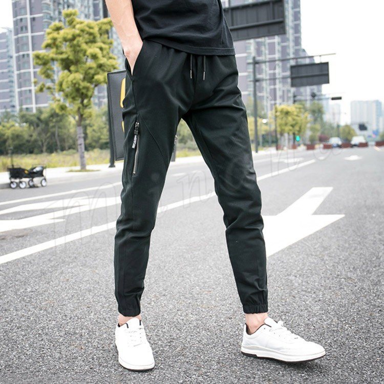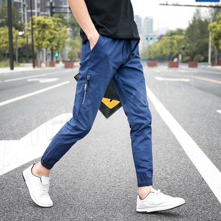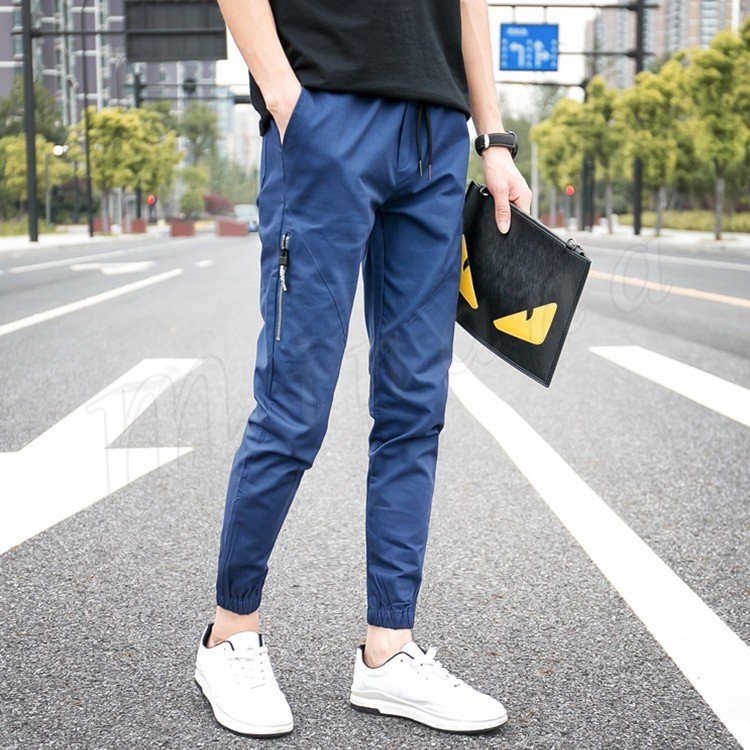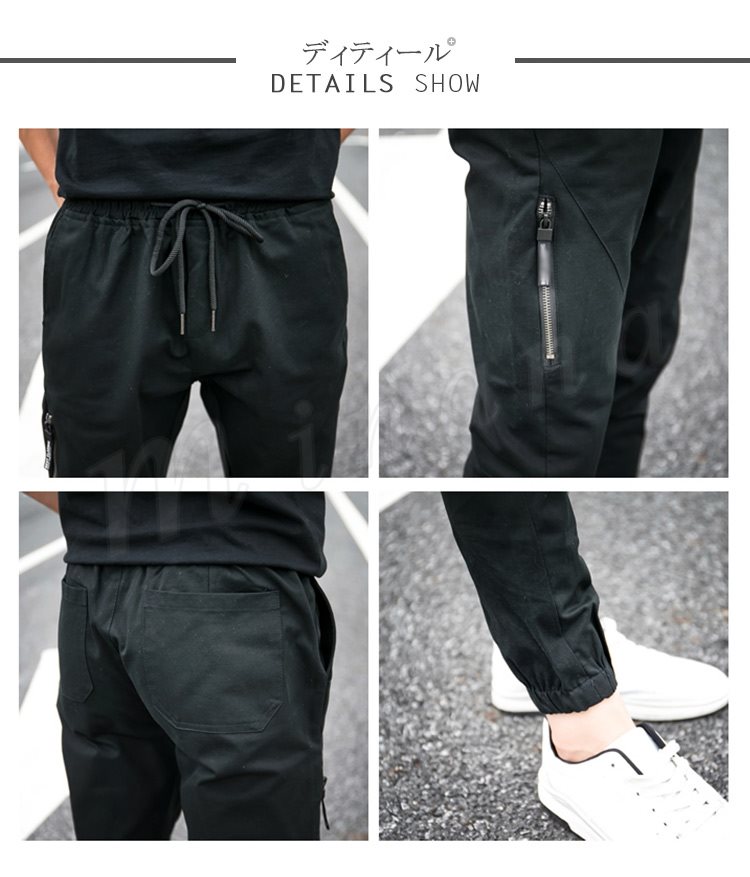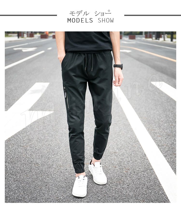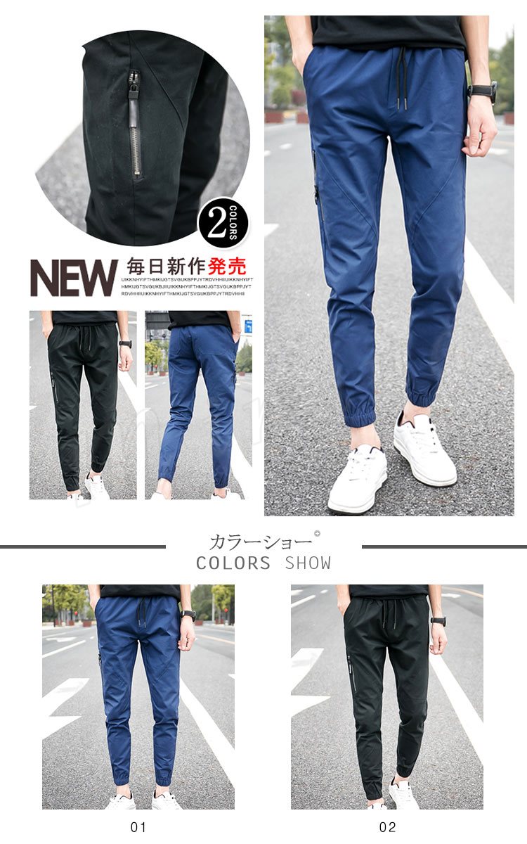 ボトムス メンズ パンツ ロングパンツ ジョガー 無地 腰紐 ジップ ウエストリブ スリム カジュアル メンズファッション