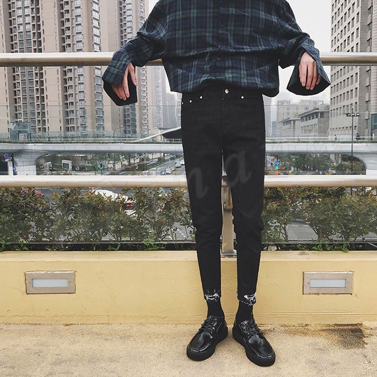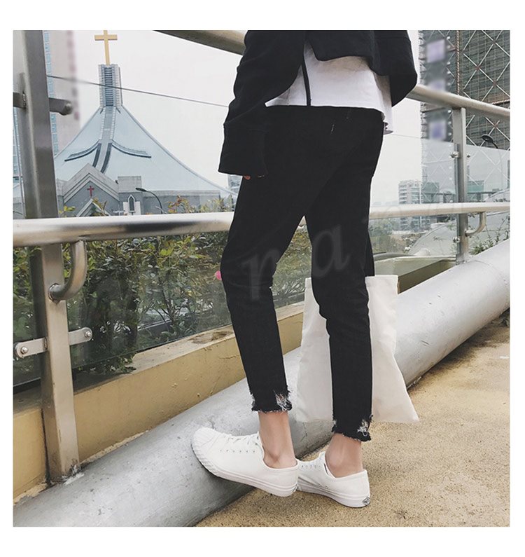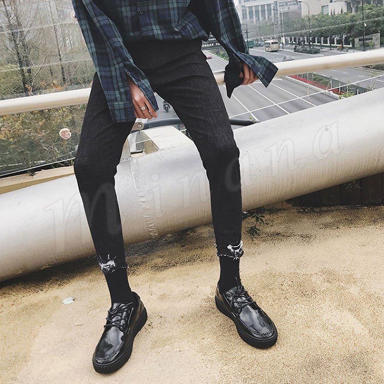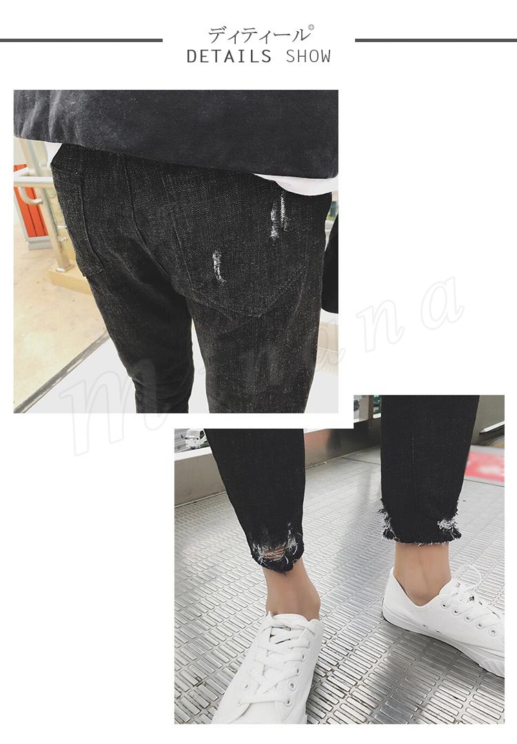 デニム メンズ ボトムス Gパン ジーパン ダメージ加工 カジュアル メンズファッション 無地 シンプル 裾ダメージ ジーンズ パンツ