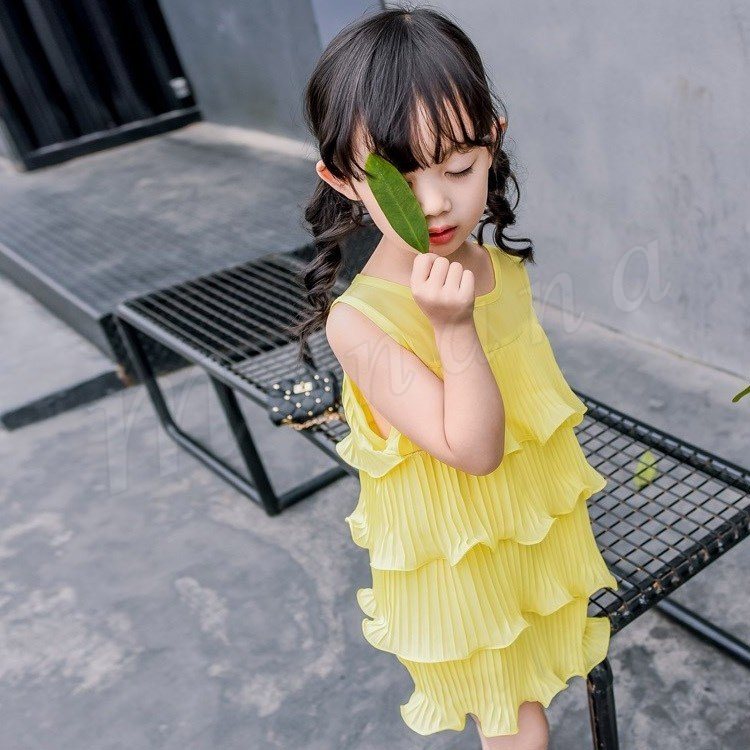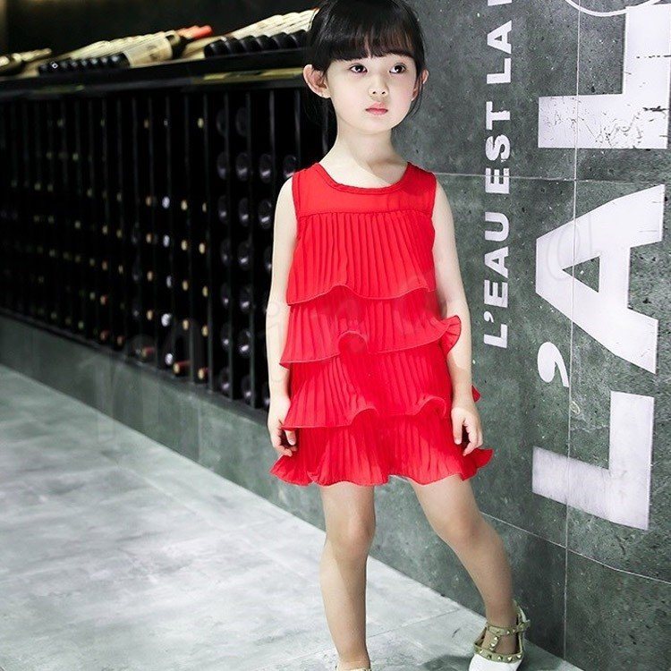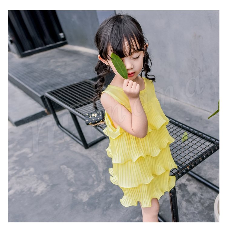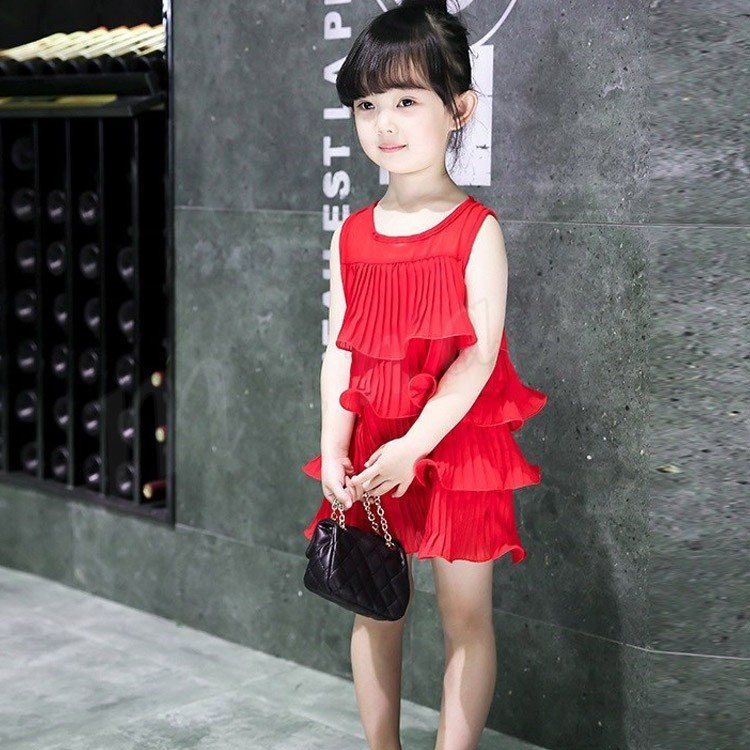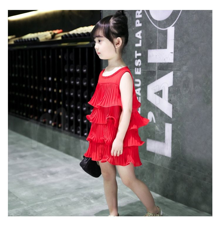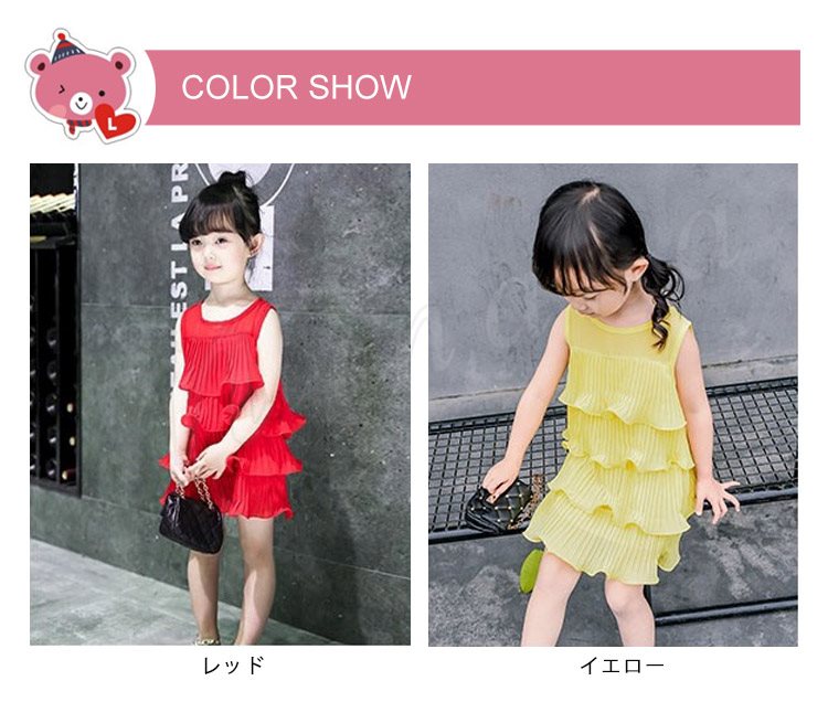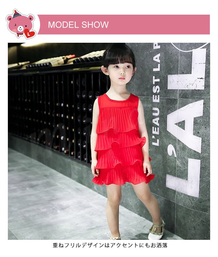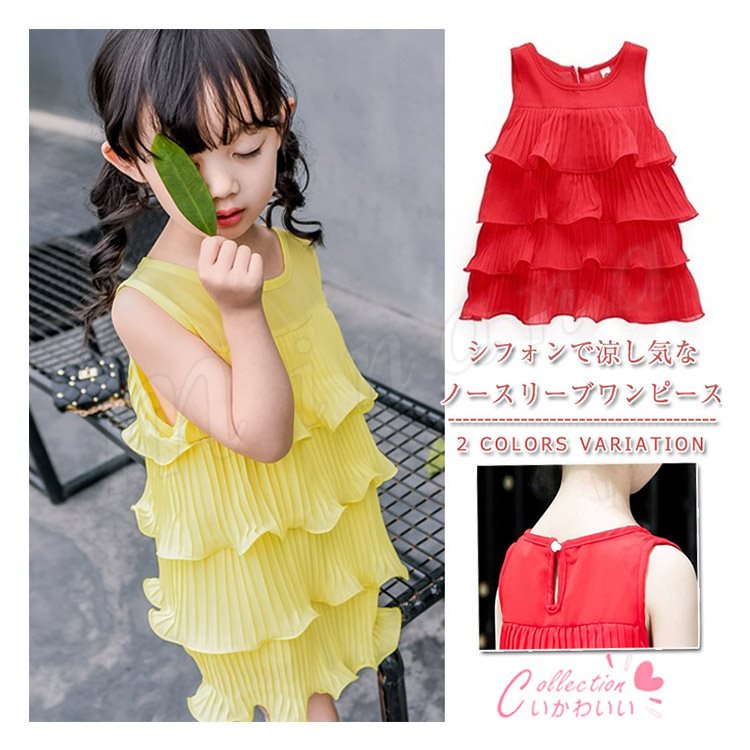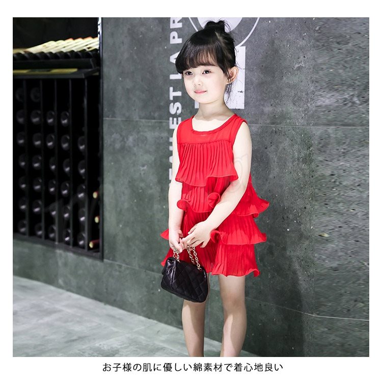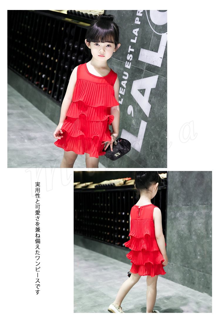 子供服ワンピースガールズ女の子シフォンワンピース子どもワンピースフリルワンピースノースリーブワンピースプリーツひざ丈ワンピバックボ