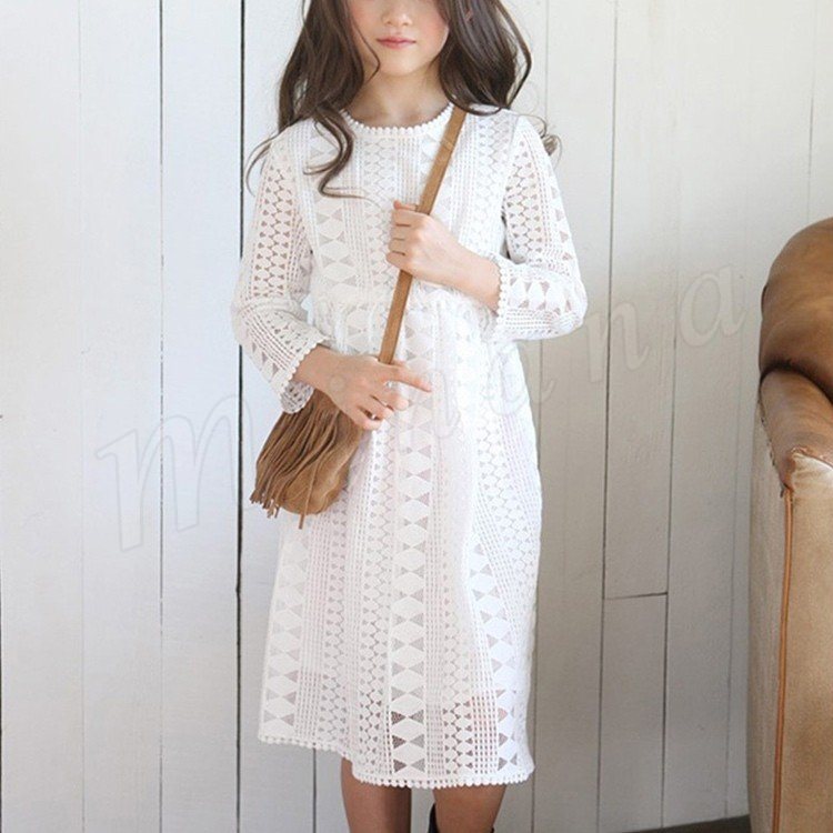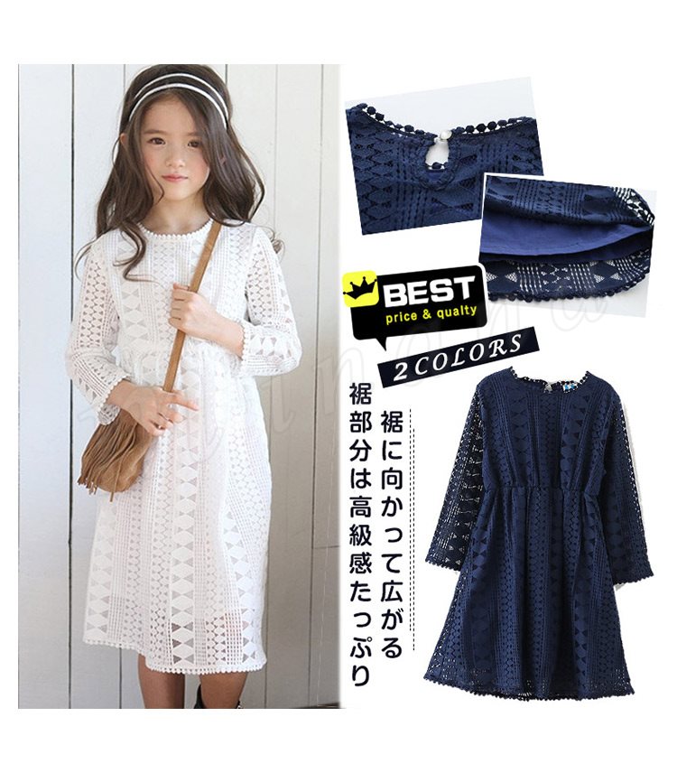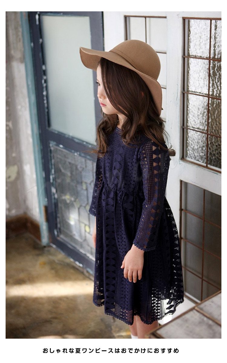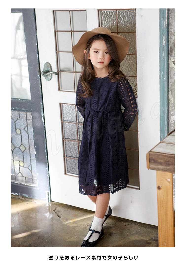 ドレス子供服ワンピースガールズ女の子子どもワンピースジュニアAラインワンピースレースワンピースロング丈