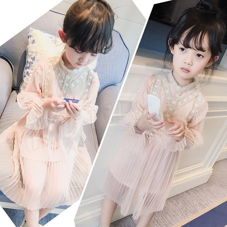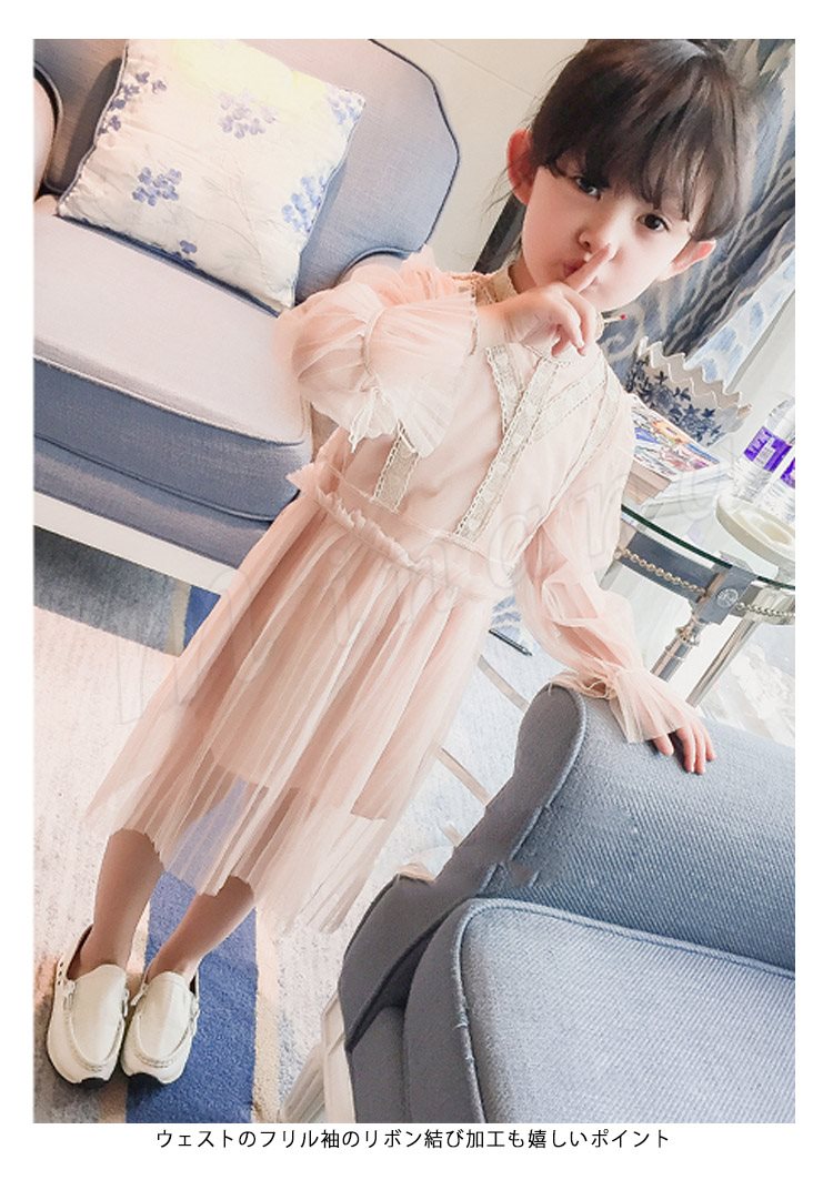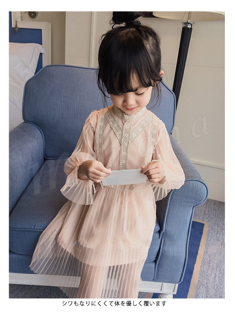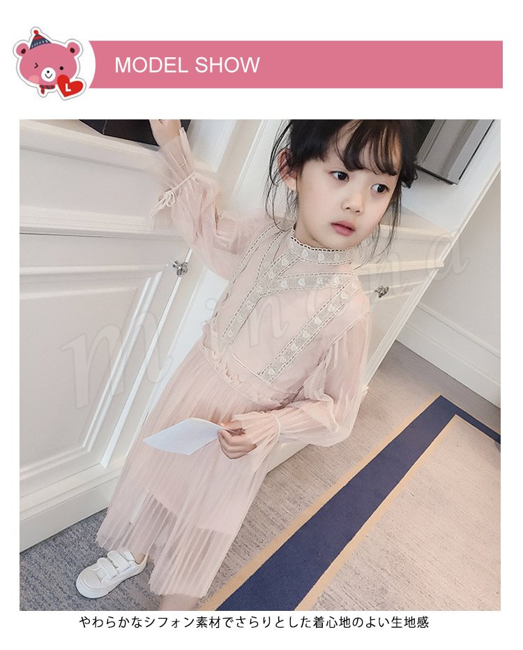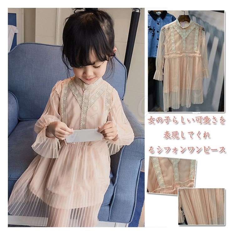 女の子ワンピース子供ワンピース女児シフォンワンピースプリーツスカートチュールスカートプリンセスドレスロングワンピースプリーツロングワンピース