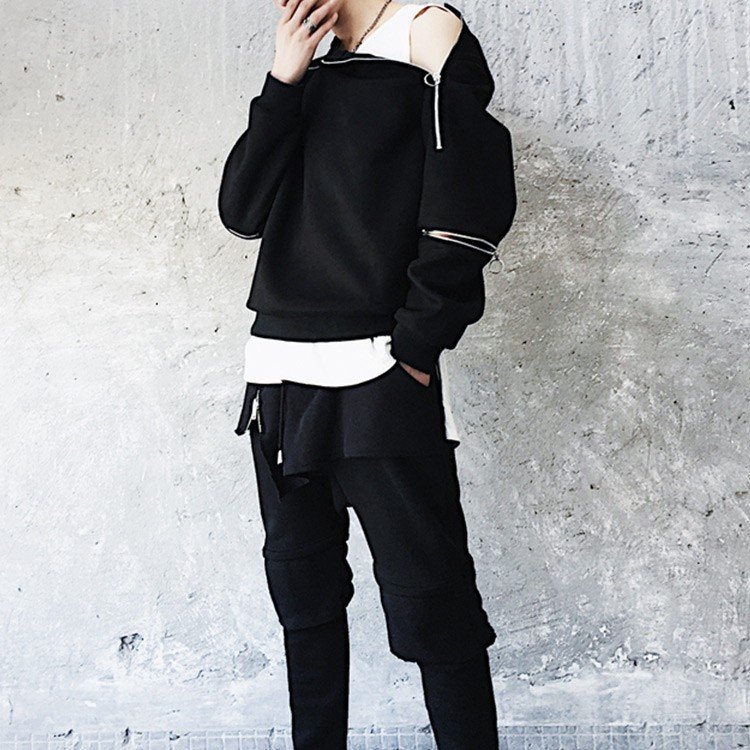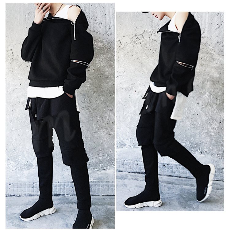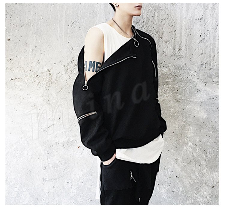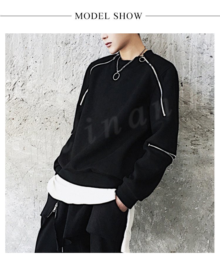 2018秋新作 トレーナー Tシャツ パーカー メンズ 長袖 無地 ファスナー付き 個性的 かっこいい プルオーバー カジュアル 春秋 トップス