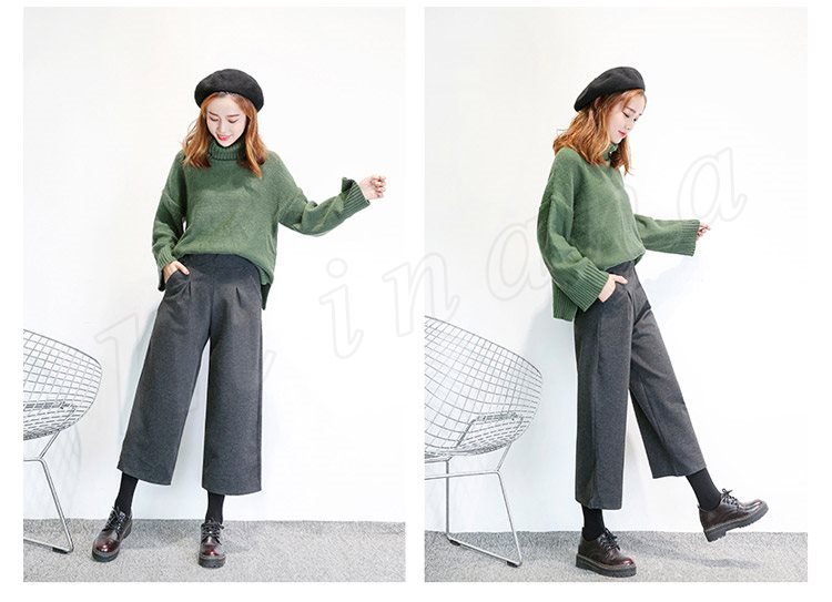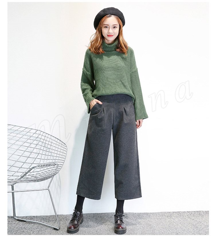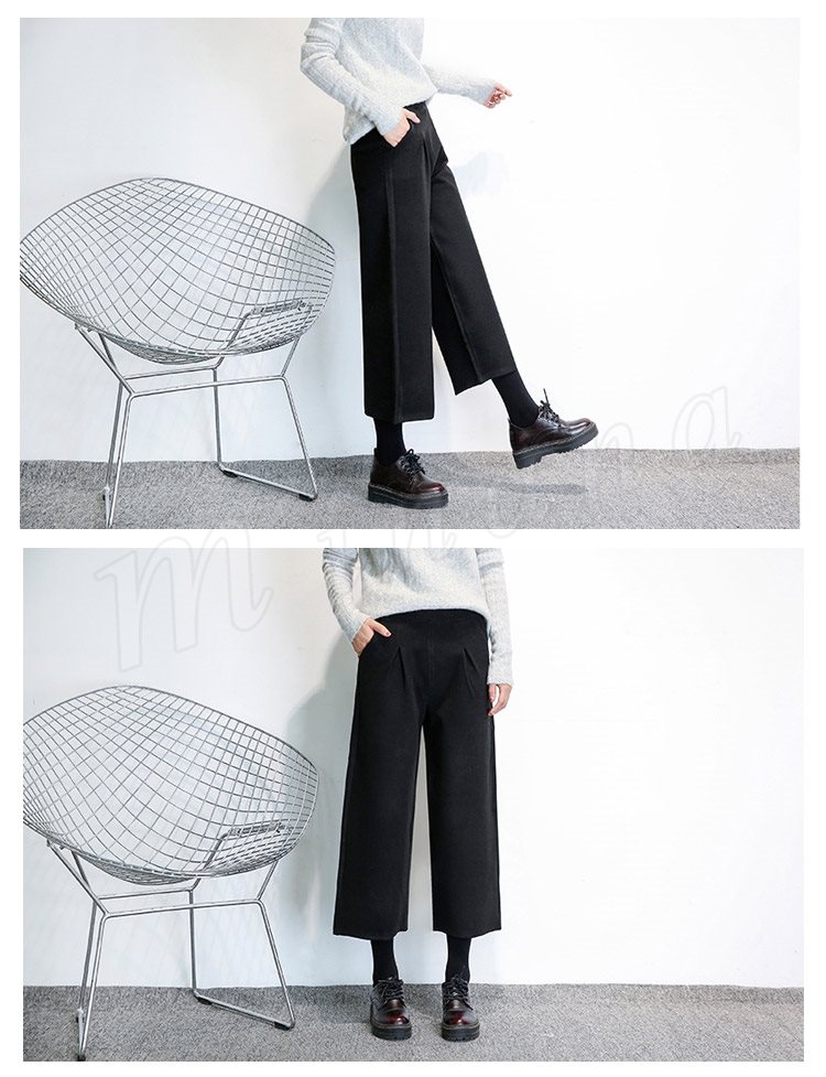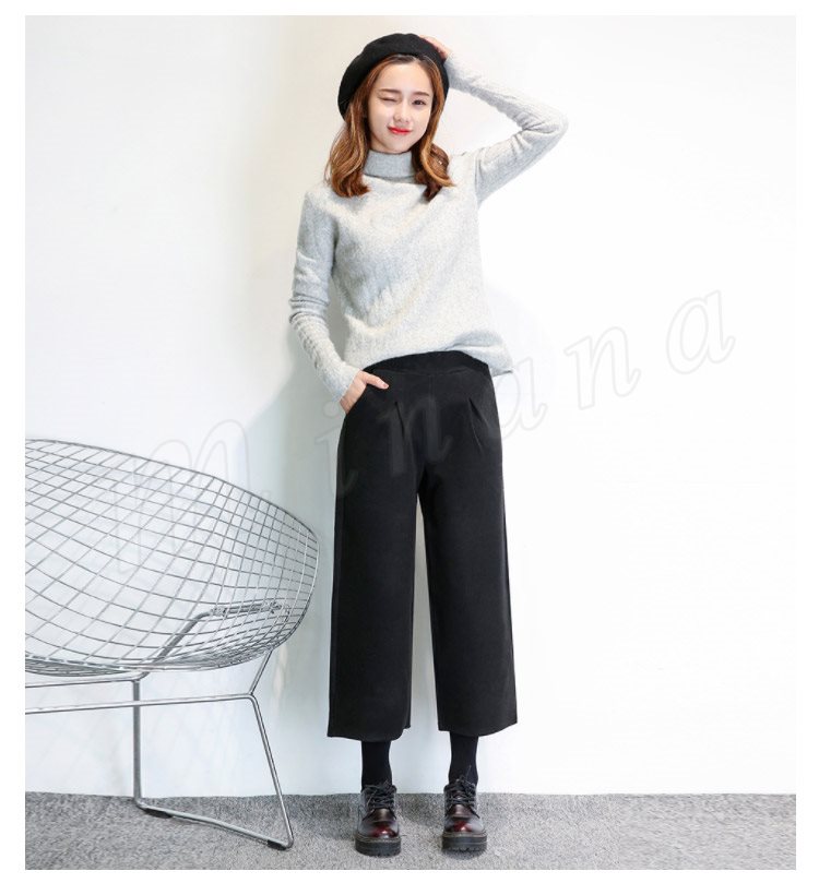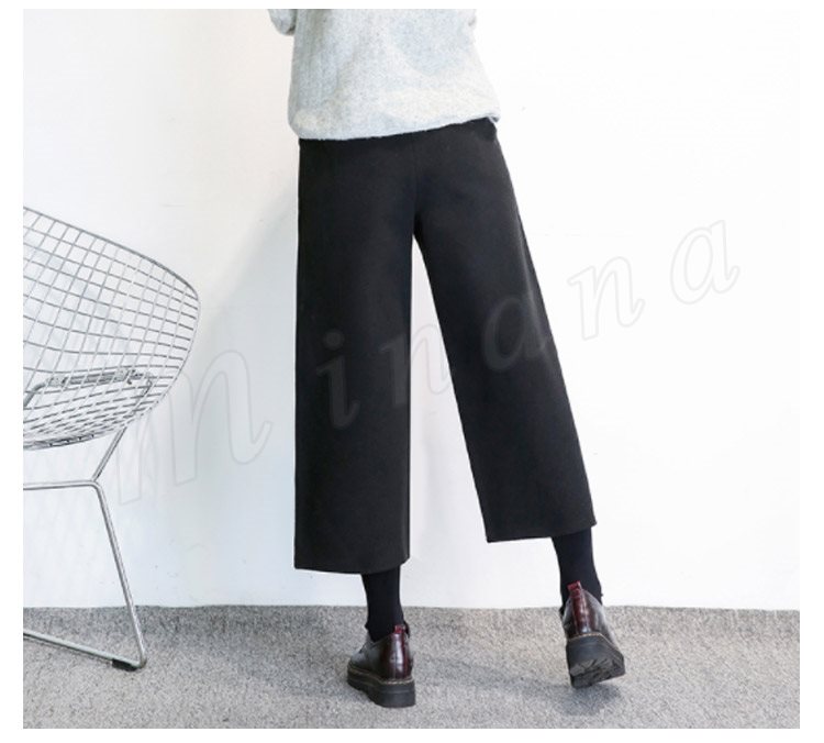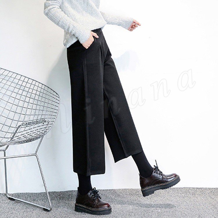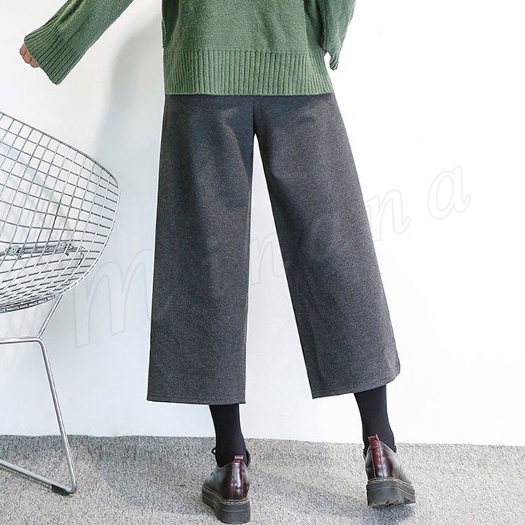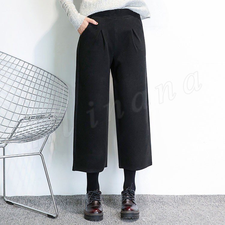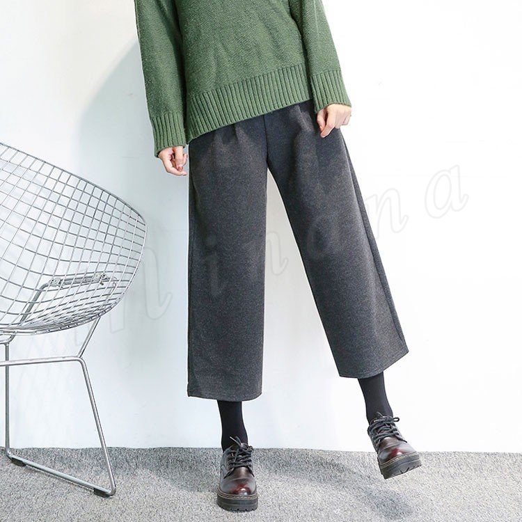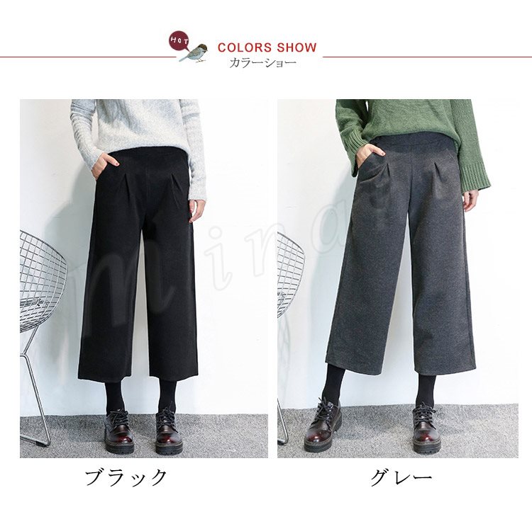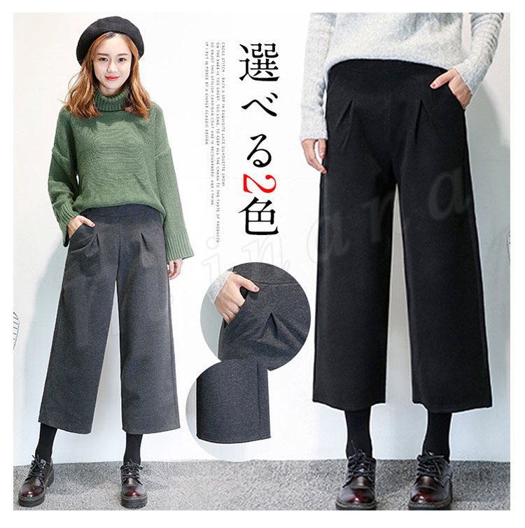 春秋新作/ガウチョパンツ/ワイドパンツ/レディース/クロップドパンツ/七分丈/ウエストゴム/厚手/スカンツ/ビジネス/通勤/カジュアル/春秋冬/お