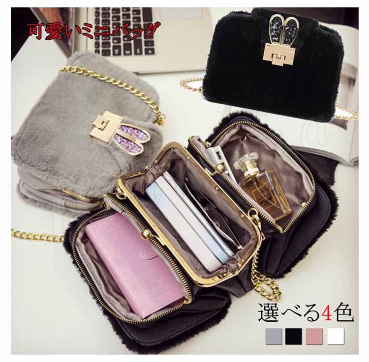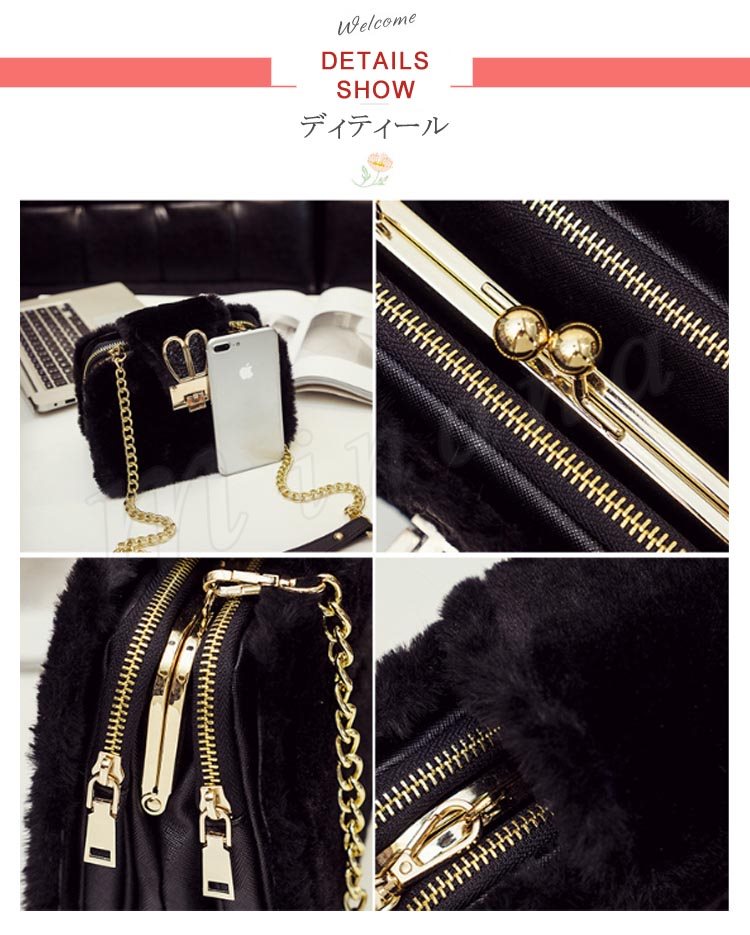 2018秋冬新作/ファーバッグ/レディースバッグ/ショルダーバッグ/チェーン/斜めがけ/ポシェット/ミニバッグ/もこもこ/可愛い/カバン/鞄/おし