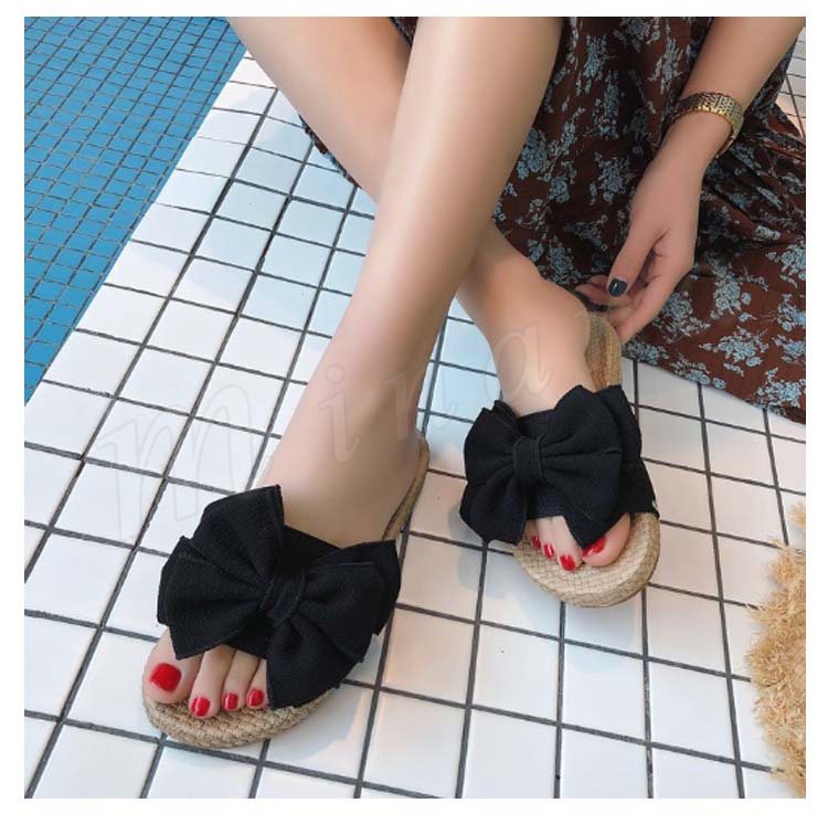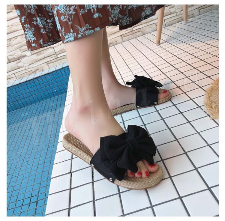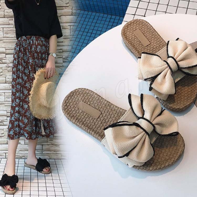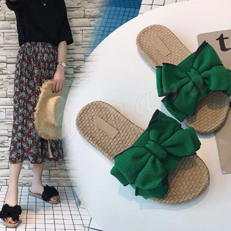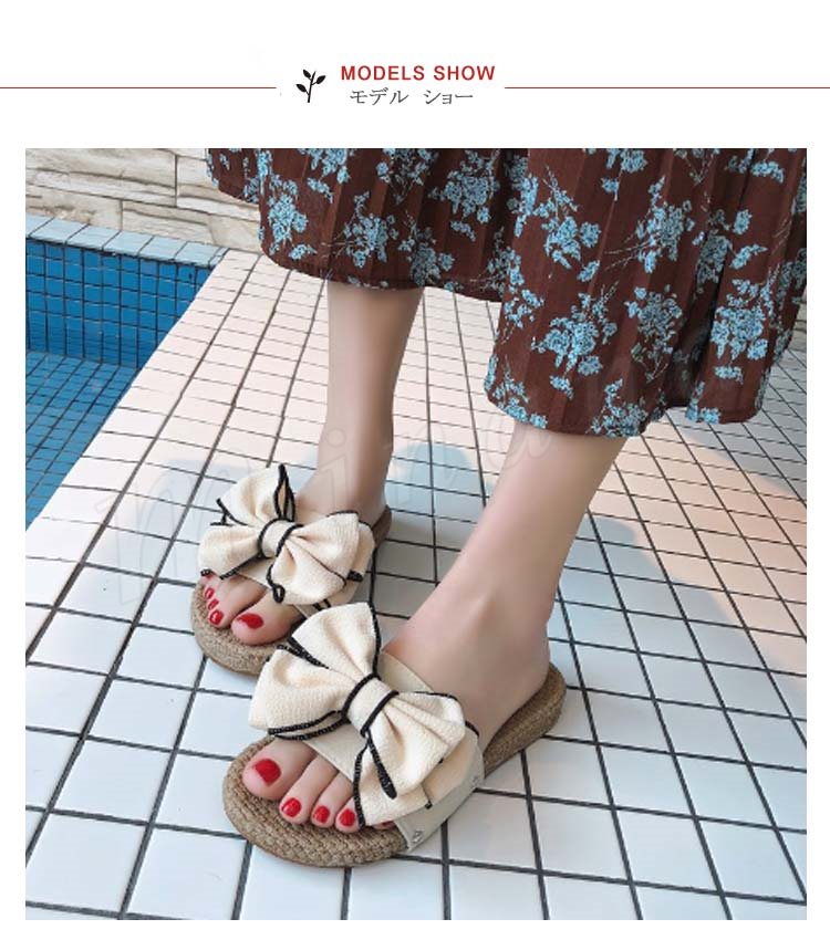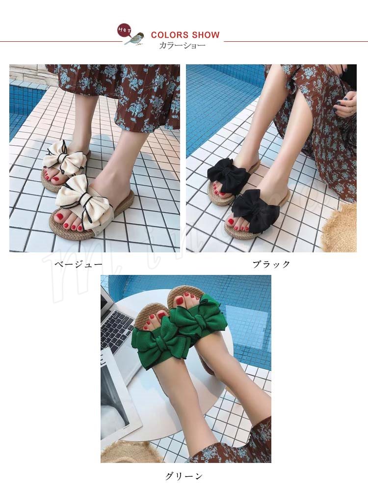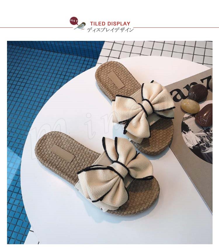 靴 シューズ サンダル スリッパ レディース ミュール リボン ペタンコ フラット