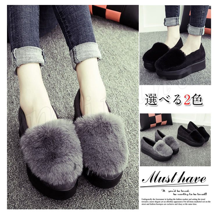 ふわふわファーが可愛い 靴 シューズ ローファー ファーシューズ ファー 厚底 厚底シューズ ラバーソール レディース