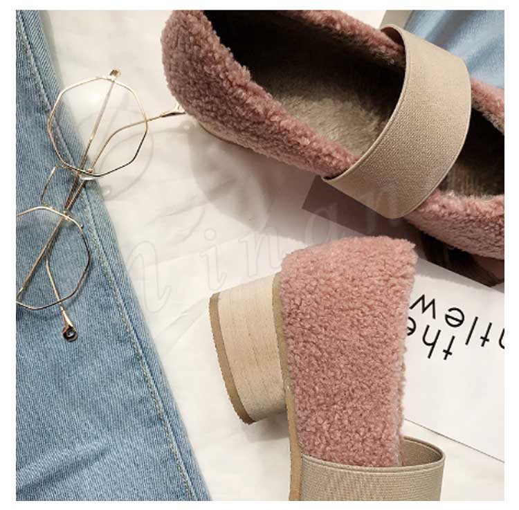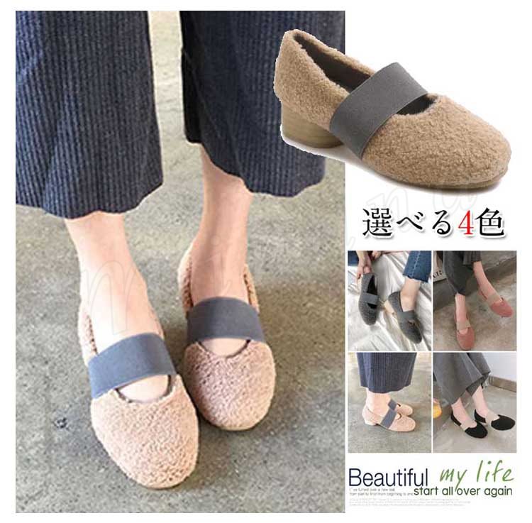 靴 シューズ パンプス ローヒール レディース モコモコ プードルパンプス プードルファー