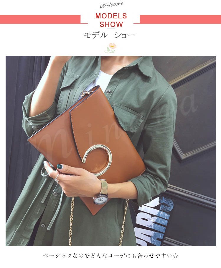 春 ショルダー ショルダーバッグ クラッチ クラッチバッグ バッグ 鞄 リング チェーン チェーンバッグ 2way ベーシック シンプル レディース