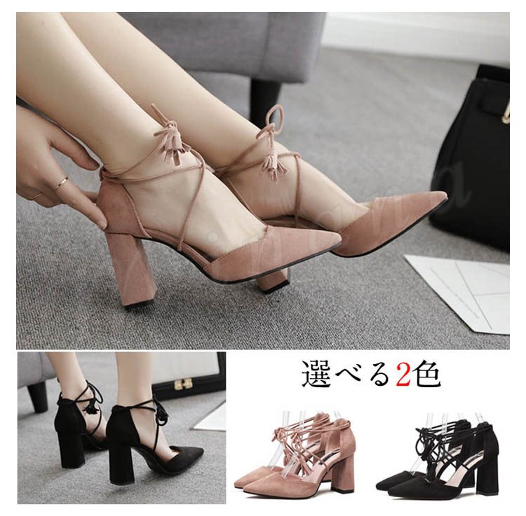 パンプス ローヒール 痛くない パンプス 大きいサイズ 太ヒール パンプス フラット 紐 編み上げ サンダル レースアップサンダル