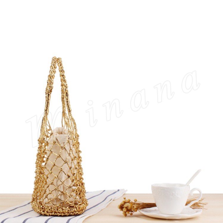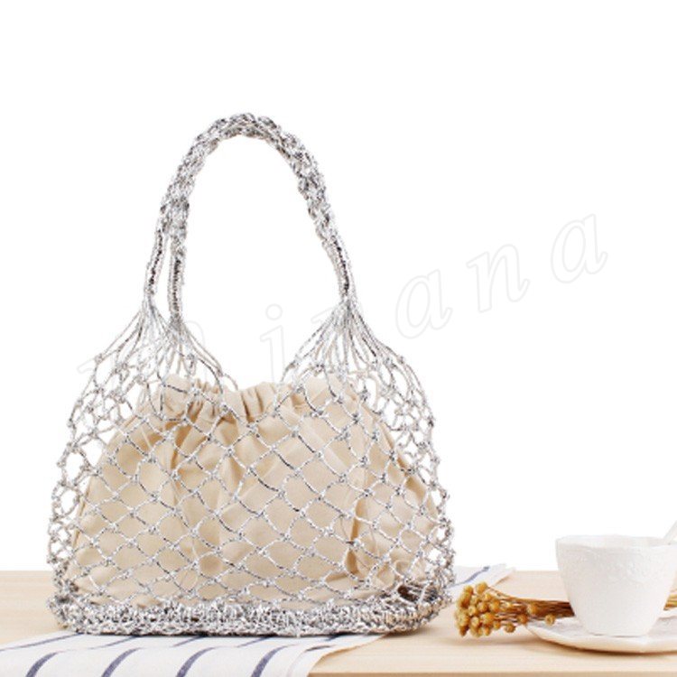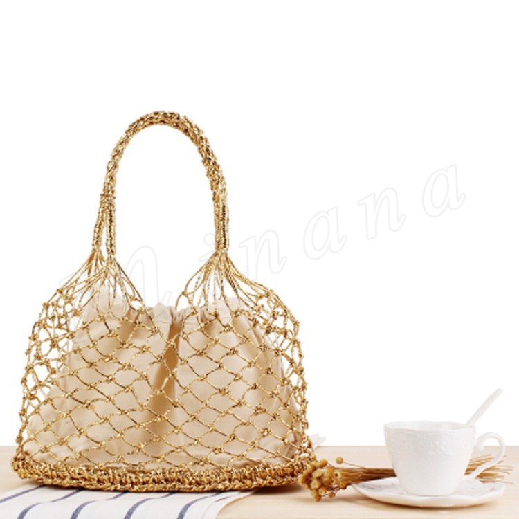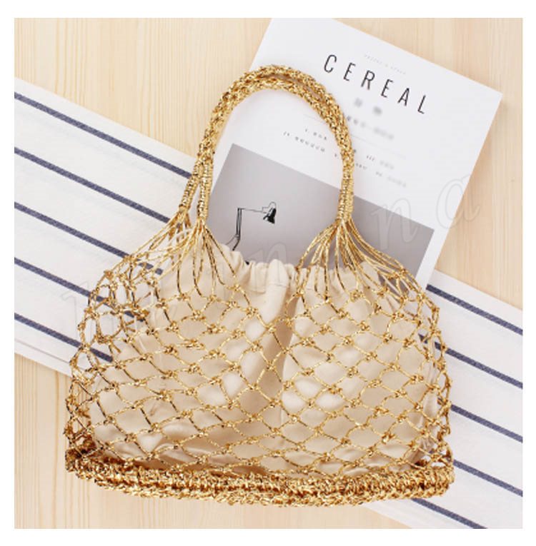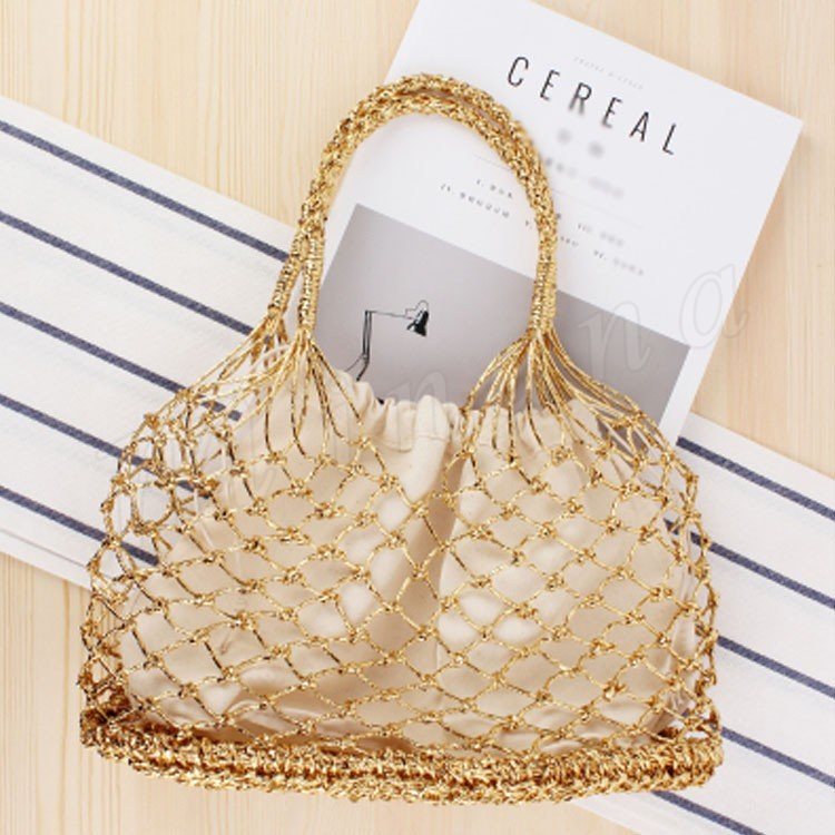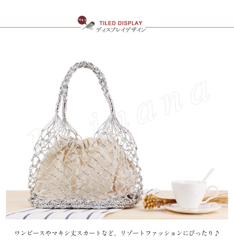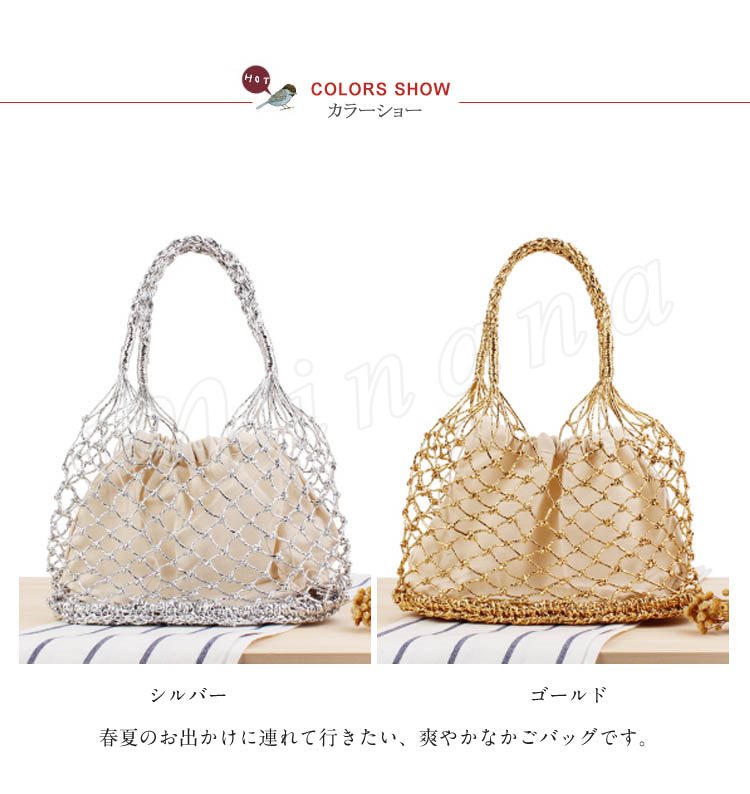 バック カゴバック ショルダーバッグ トートバック バスケット 2way 編み 手持ち 手提げ 肩掛け トート 大容量 軽量 ゴールド シルバー オシ