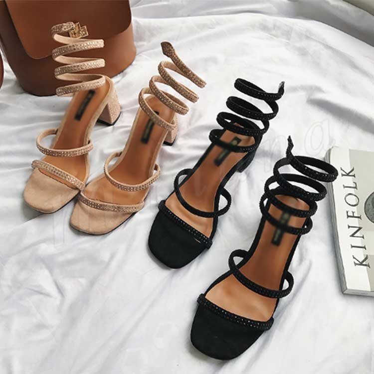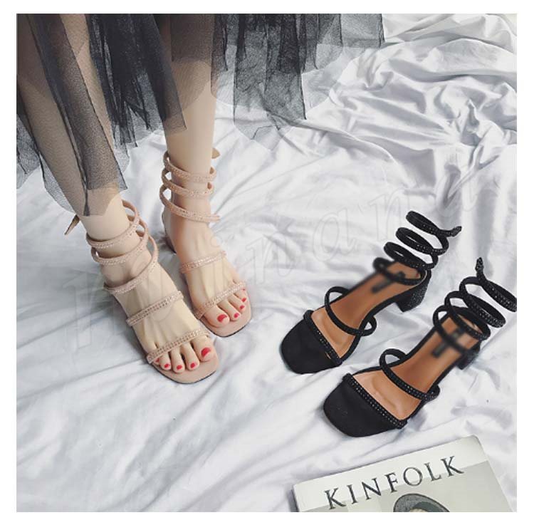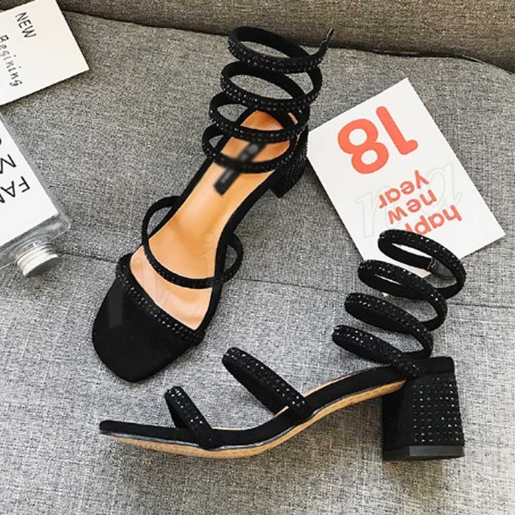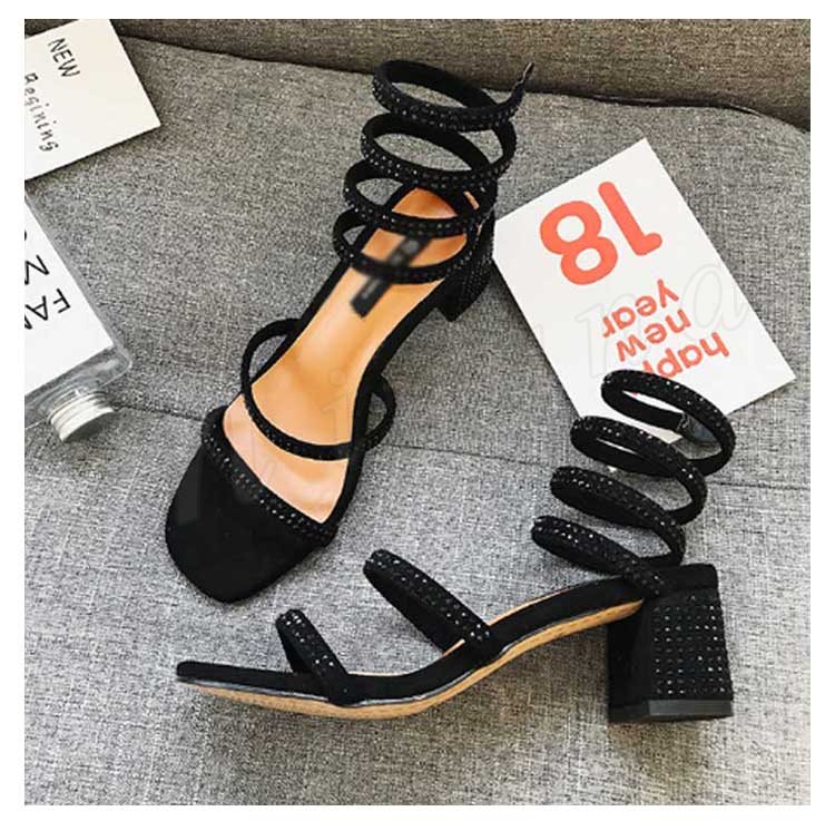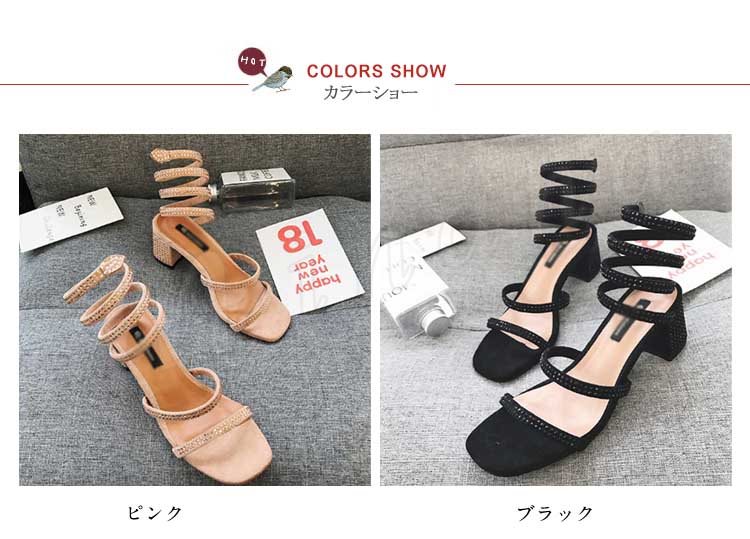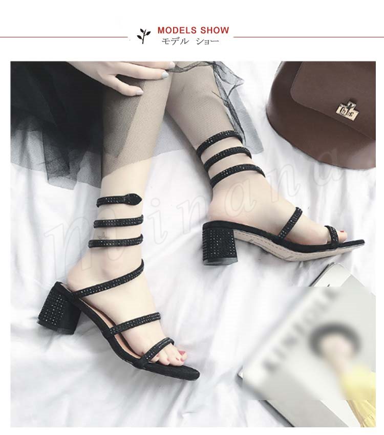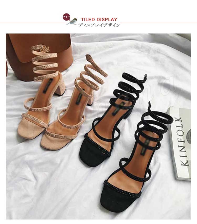 サンダル グラディエーター アウトドアサンダル レディース ハイヒール ラインストーン スクエア チャンキーヒール トラップ 疲れない 脱げにくい き