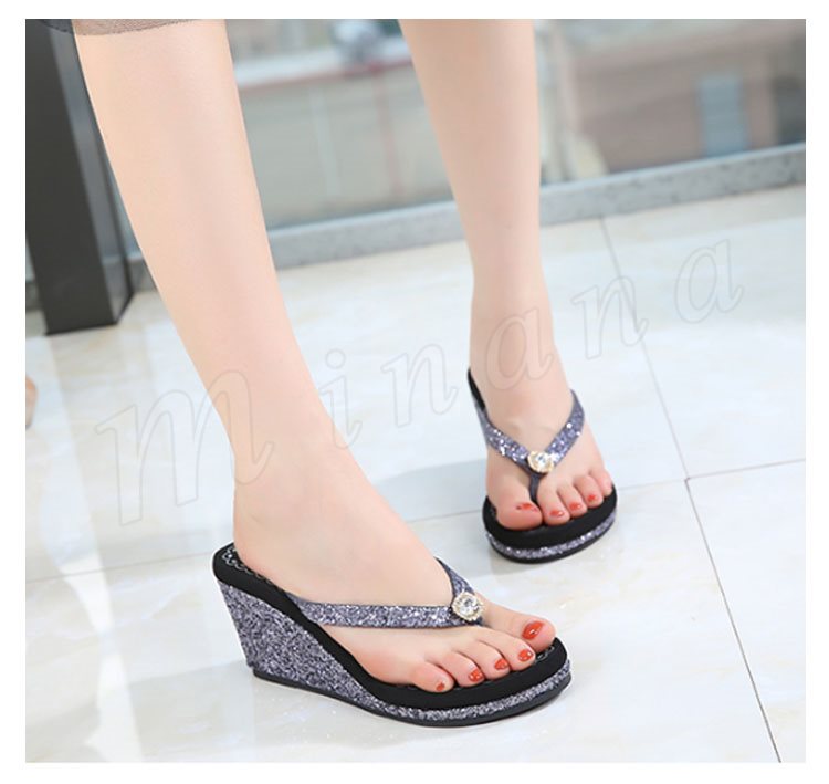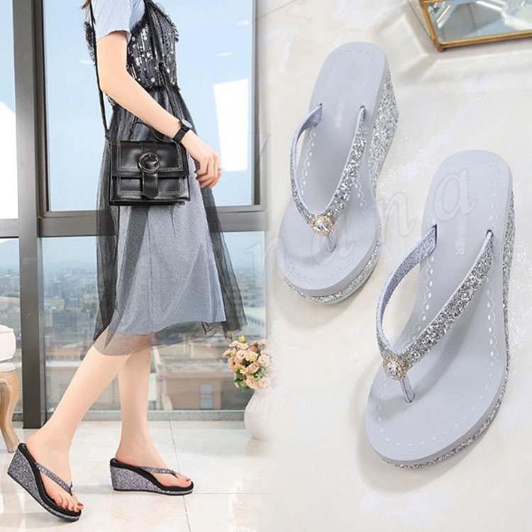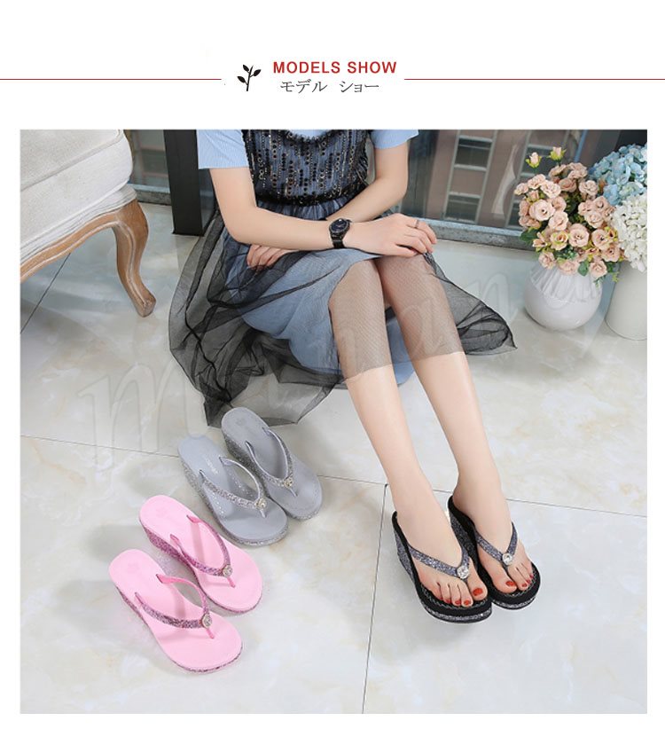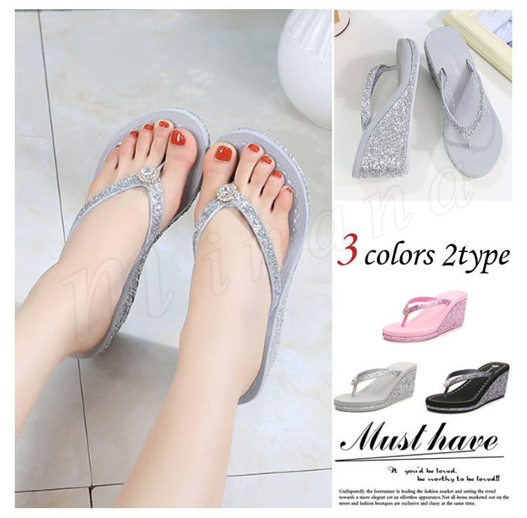 サンダル ビーチサンダル レディース シュール スリッパ トング 厚底 ハイヒール ウェッジソール ラインストーン ストラップ 美脚 履きやすい きれ