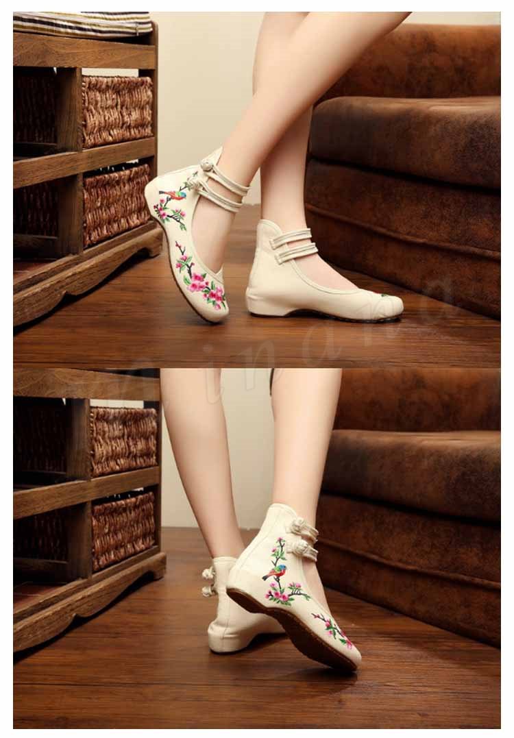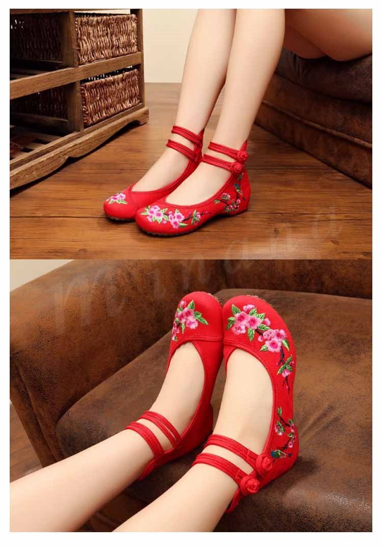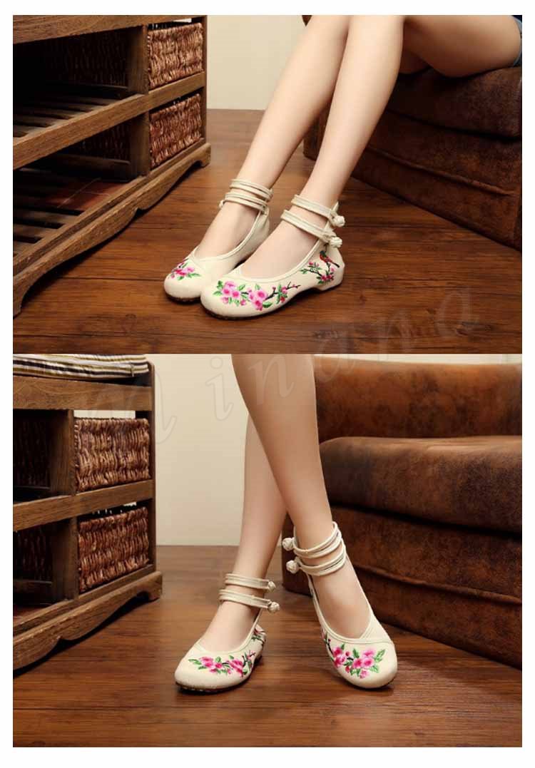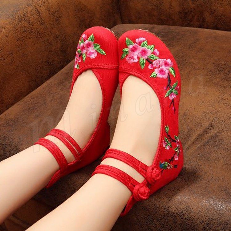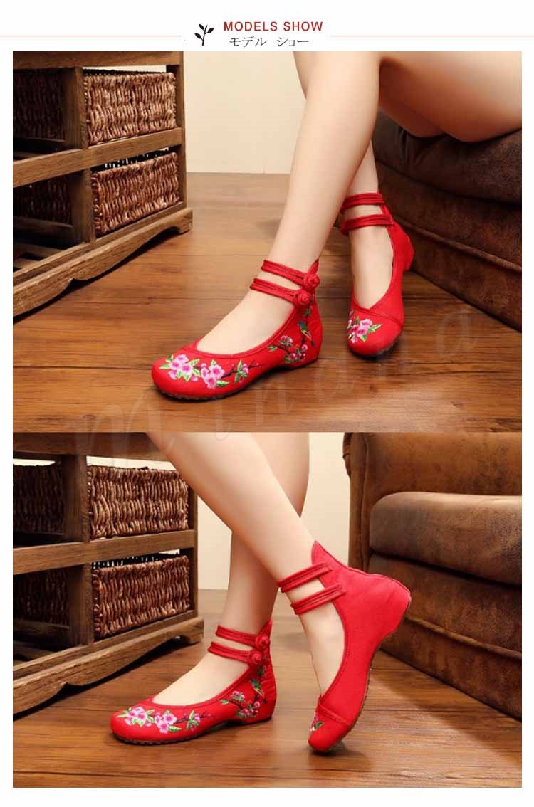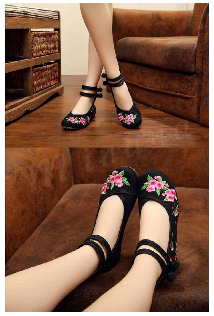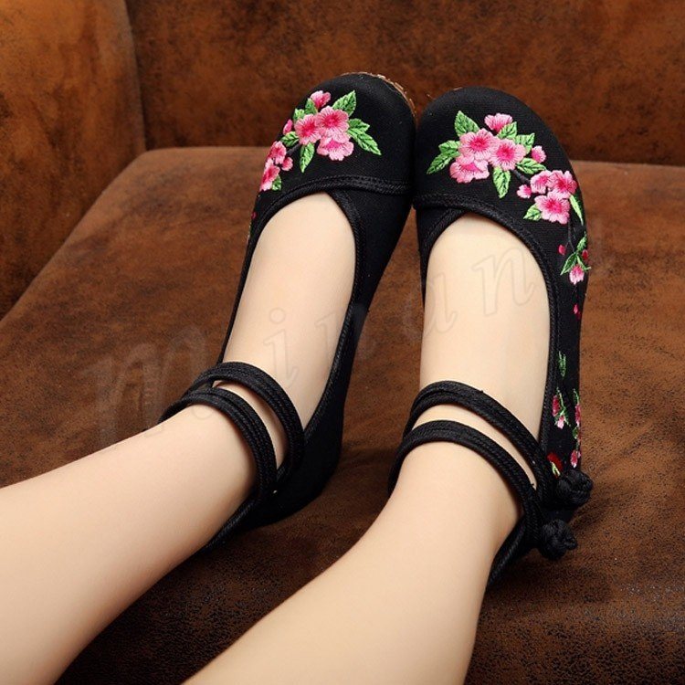 刺繍 花柄手作りチャイナ靴 履きやすい ダンスシューズ パンプス唐装漢服太極拳専用ローヒール中華コスプレシューズ 春夏秋