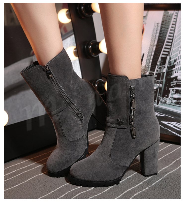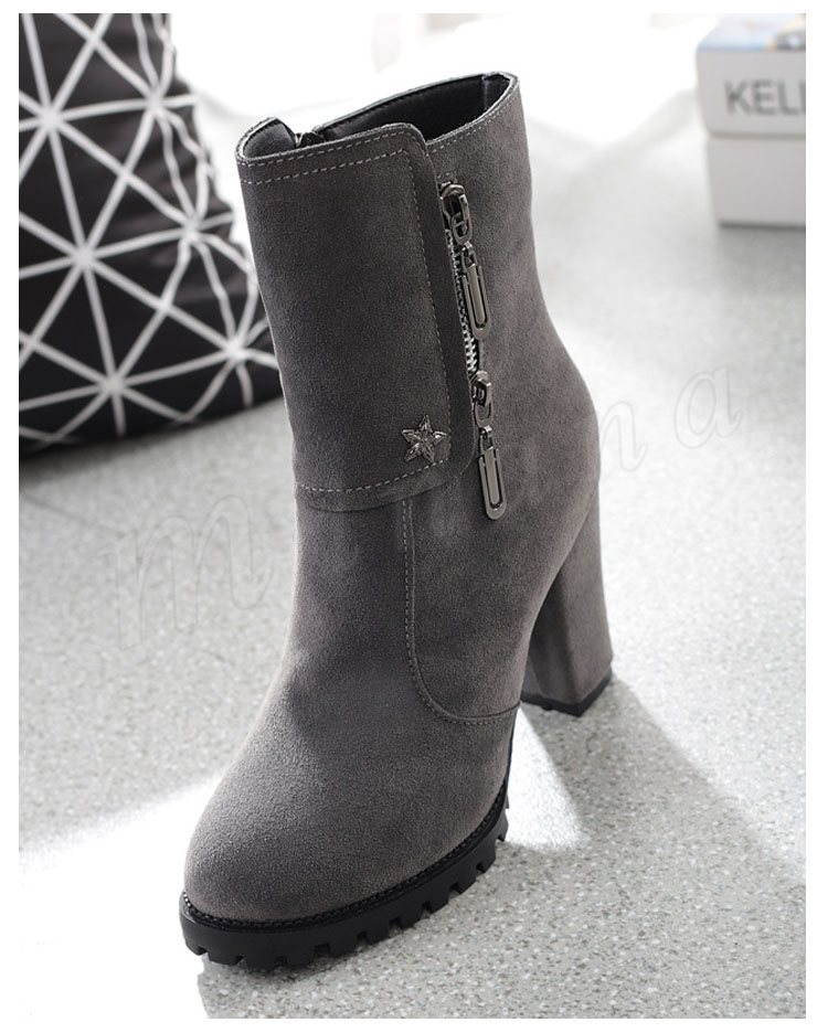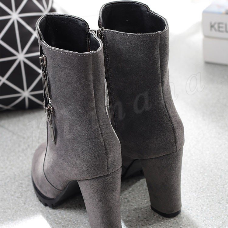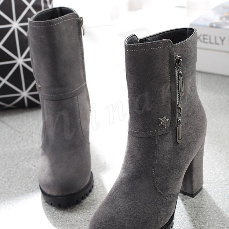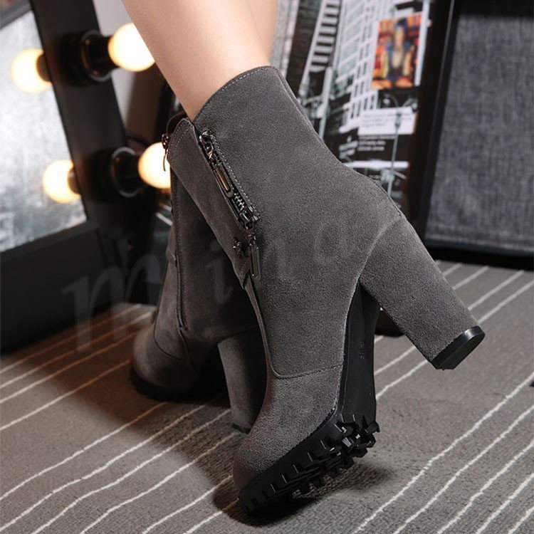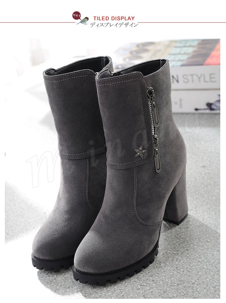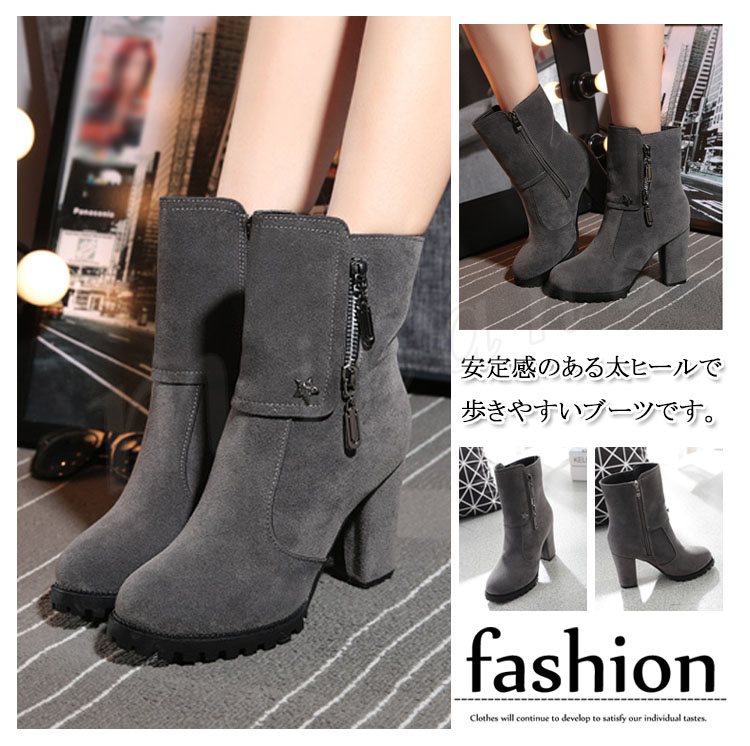 スエード調 サイドジップ チャンキー ショートブーツ?