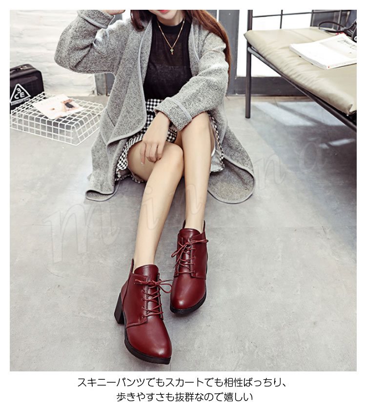 レースアップ ブーティ ローヒール ショートブーツ レディース 履きやすい