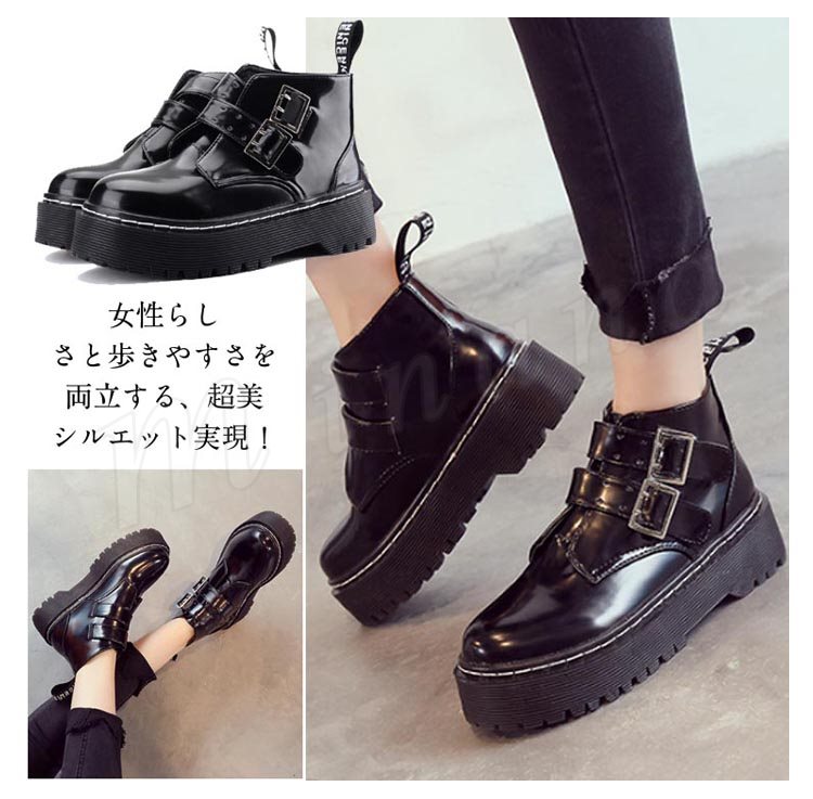 ショートブーツ レディース ヒール マーティンブーツ レースアップ 編上げは ラウンドトゥ 厚底 ミドルヒール 靴 シューズ