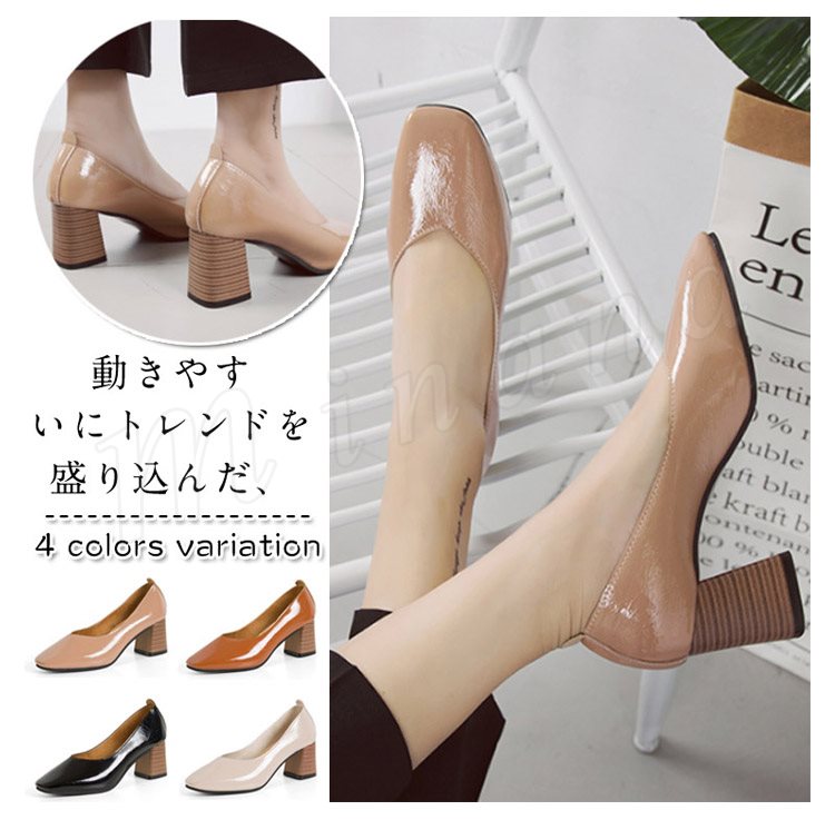パンプス レディース ローヒールパンプス 歩きやすい 春夏 太ヒールパンプス 痛くない 甲深パンプス 靴 レディース シューズ スクエアトゥ フェミニ