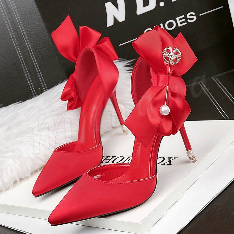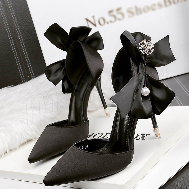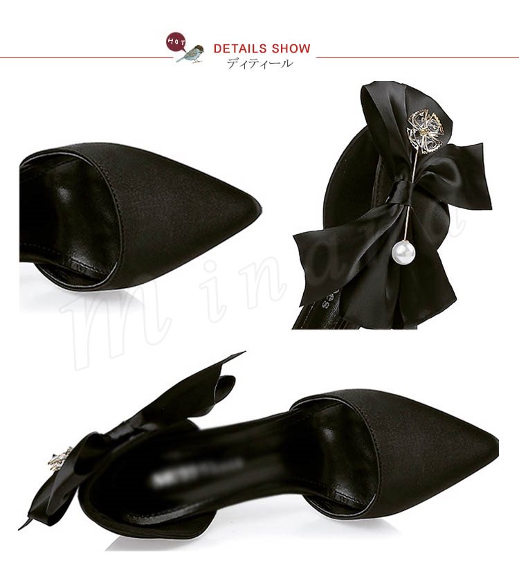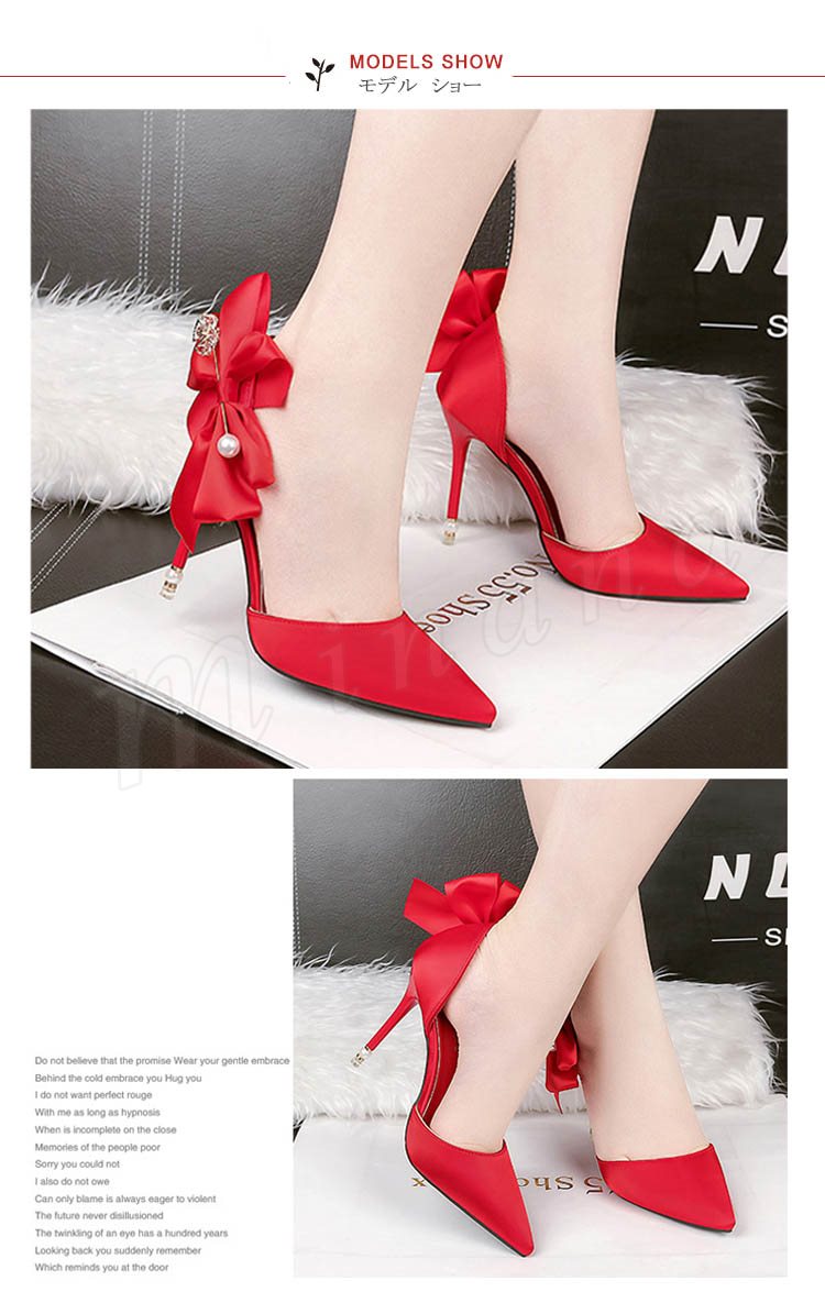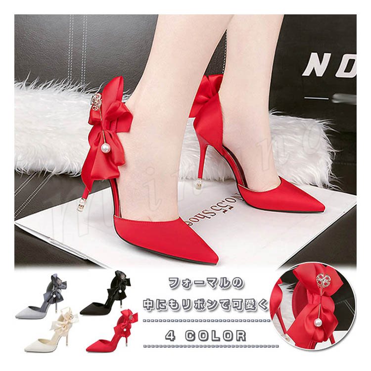 結婚式 パンプス パーティー シューズ パーティーシューズ パーティー パンプス 結婚式 靴 ハイヒール ビジュー サテン リボン ピンヒールブラック