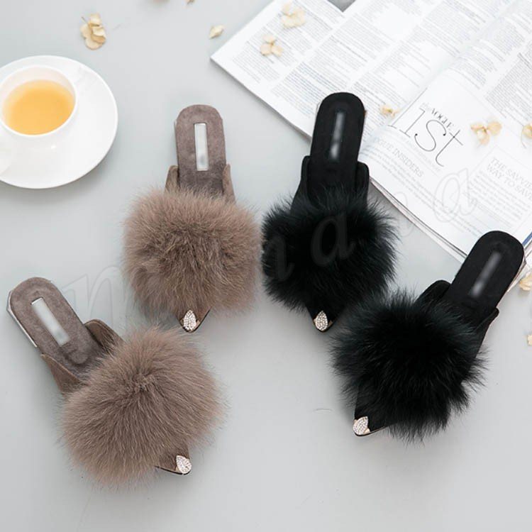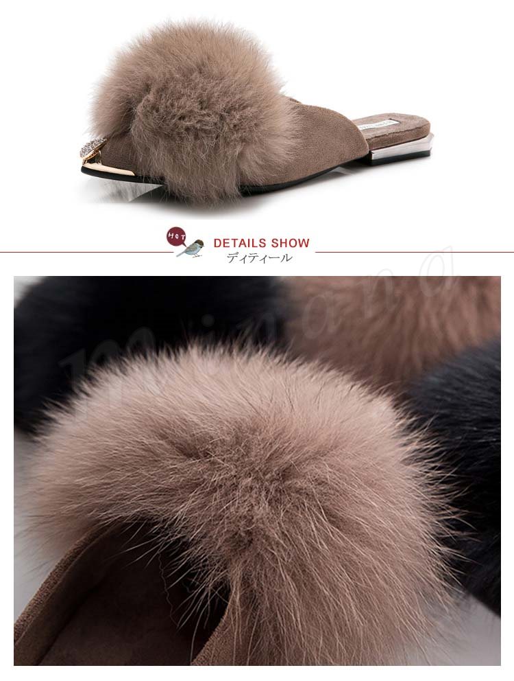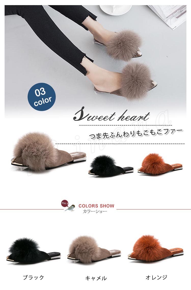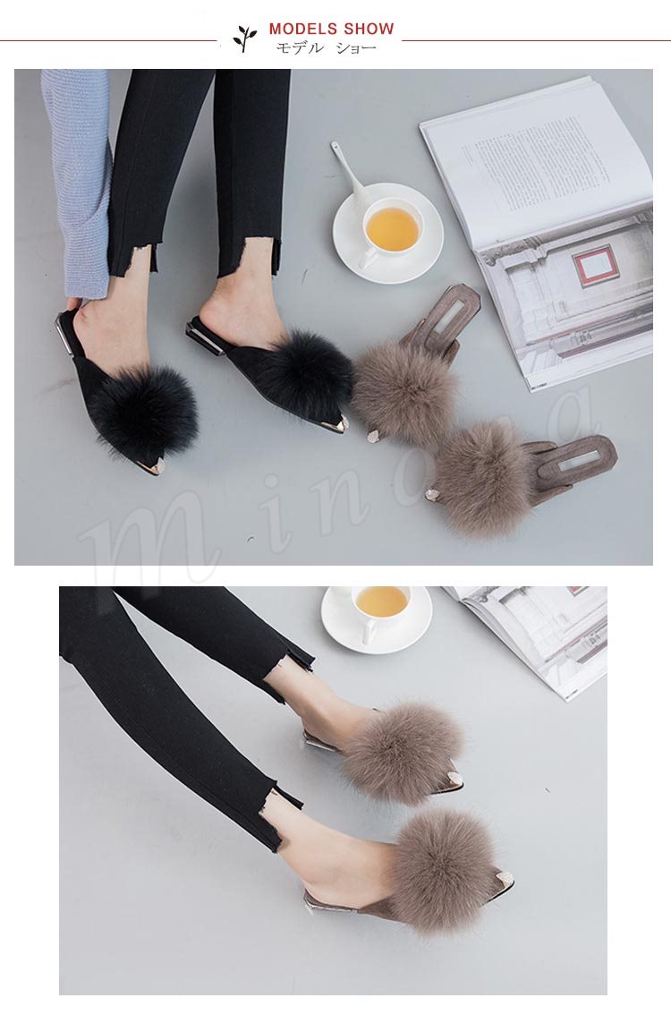 モカシン スリッポン レディース ぺたんこ靴 ぺたんこシューズ ファー付きパンプス リアルフォックスファー付き パンプス ポンポン もこもこシューズ
