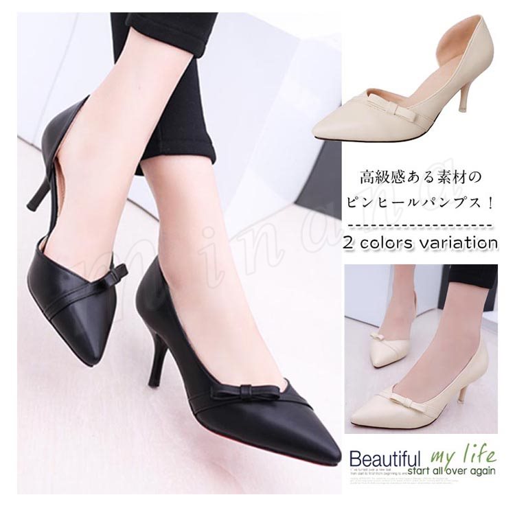 パンプス ピンヒール パンプス ヒール ポインテッドトゥ シューズ 靴 レディース 蝶結び 結婚式 ベーシック シンプル 2018秋新作 春夏