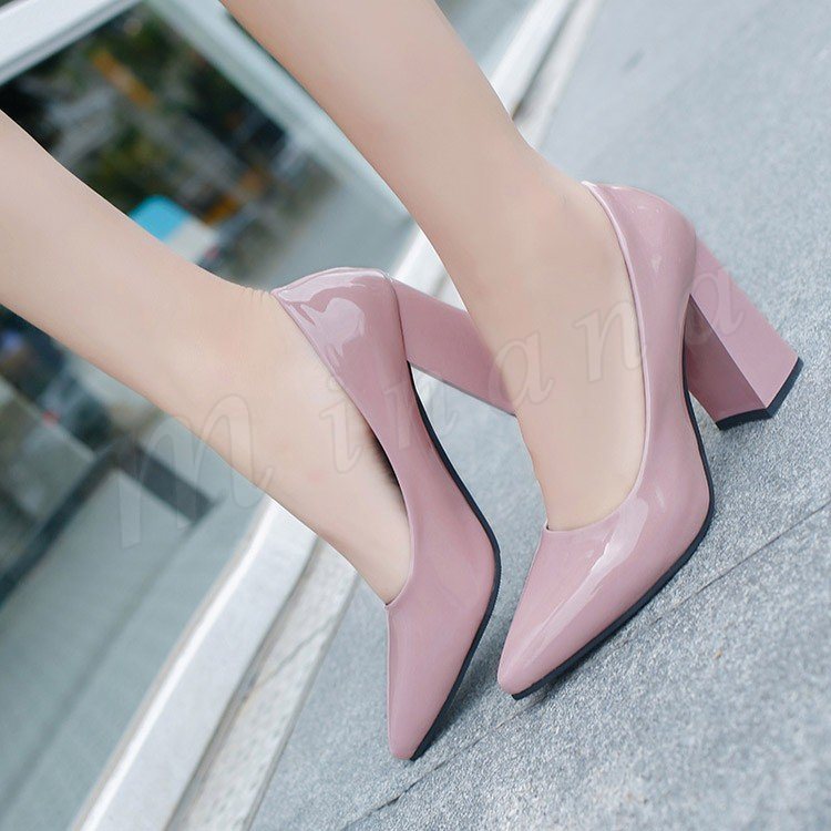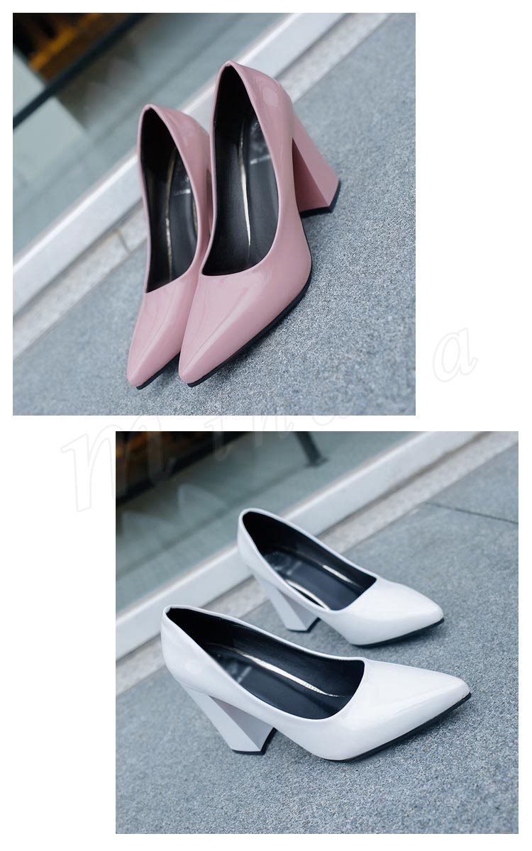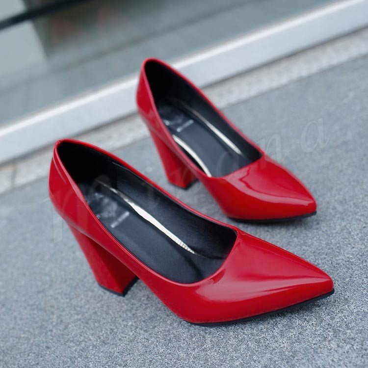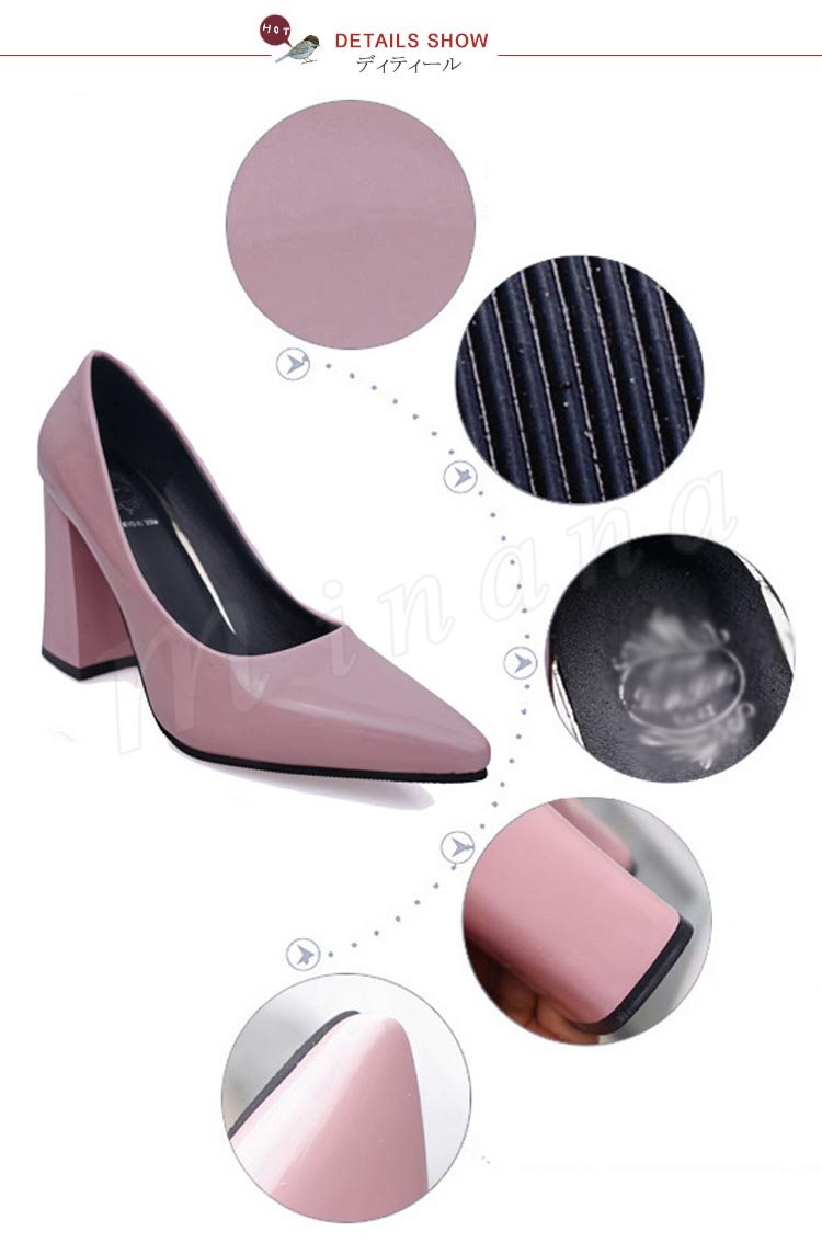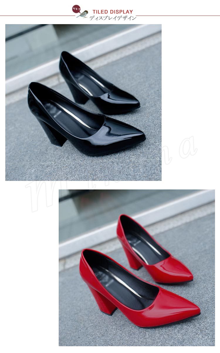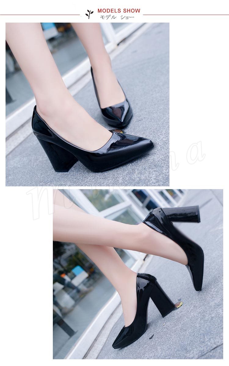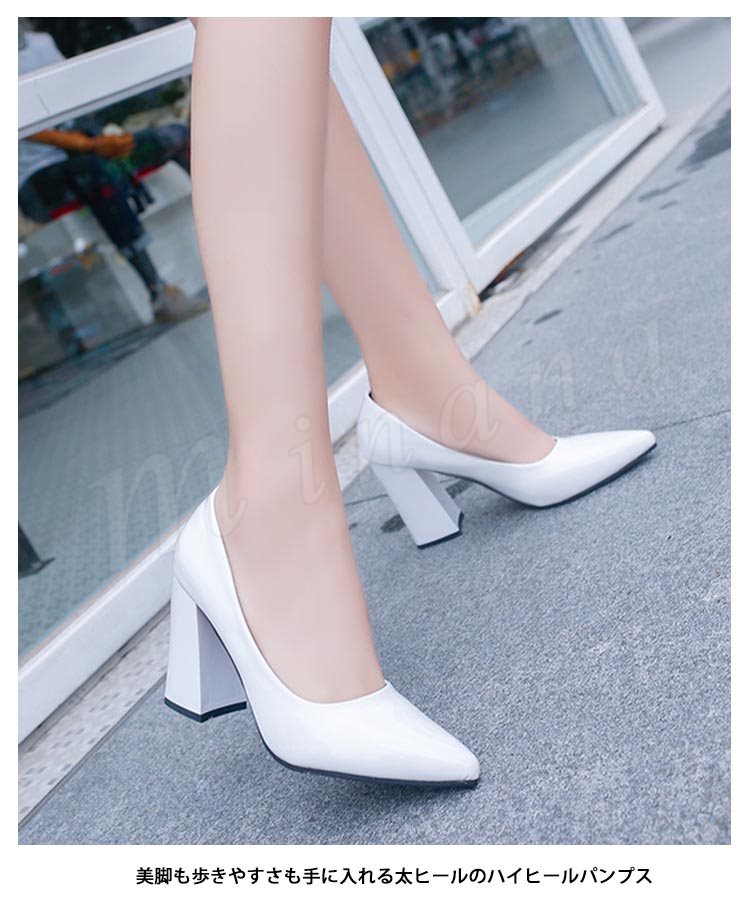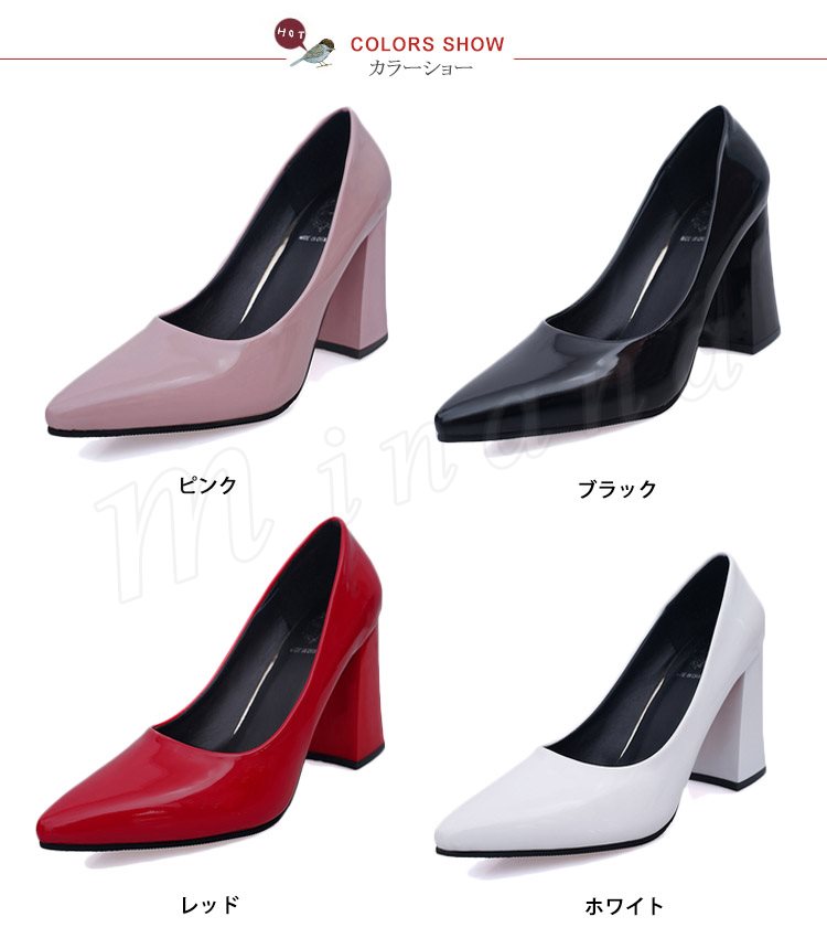 パンプス 痛くない ハイヒール パンプス 太ヒール チャンキーヒール エナメルパンプス