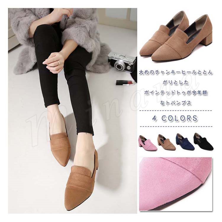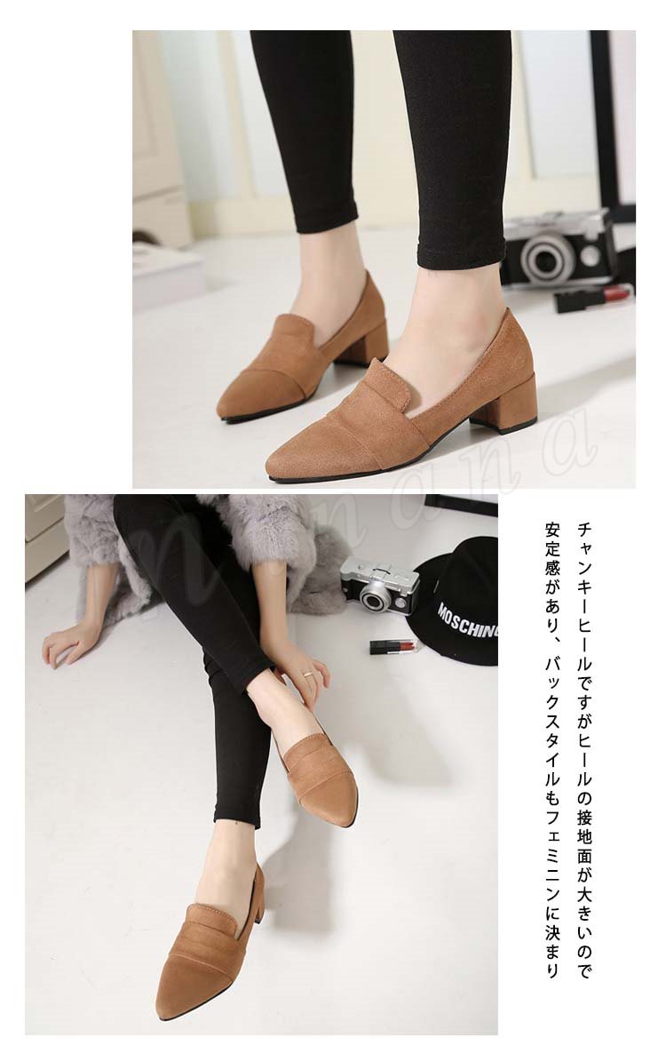 パンプス スエードパンプス レディース 太めヒール ポインディトゥ チャンキーヒールパンプス 走れるパンプス 痛くない 靴