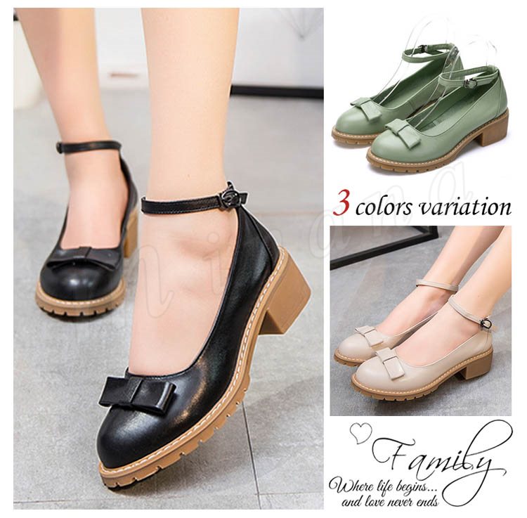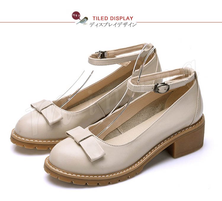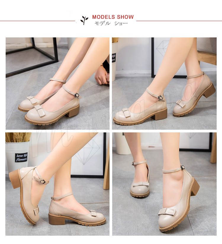 アンクルストラップ シューズ ラウンドトゥ リボン 大人ガーリー ローヒール レディース靴 秋 くつ下 オン コーデ