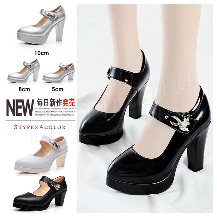 パンプス 痛くない レディース ストラップ ハイヒール 太ヒール ラウンドトゥ レースアップ 走れるパンプス 2018春新作