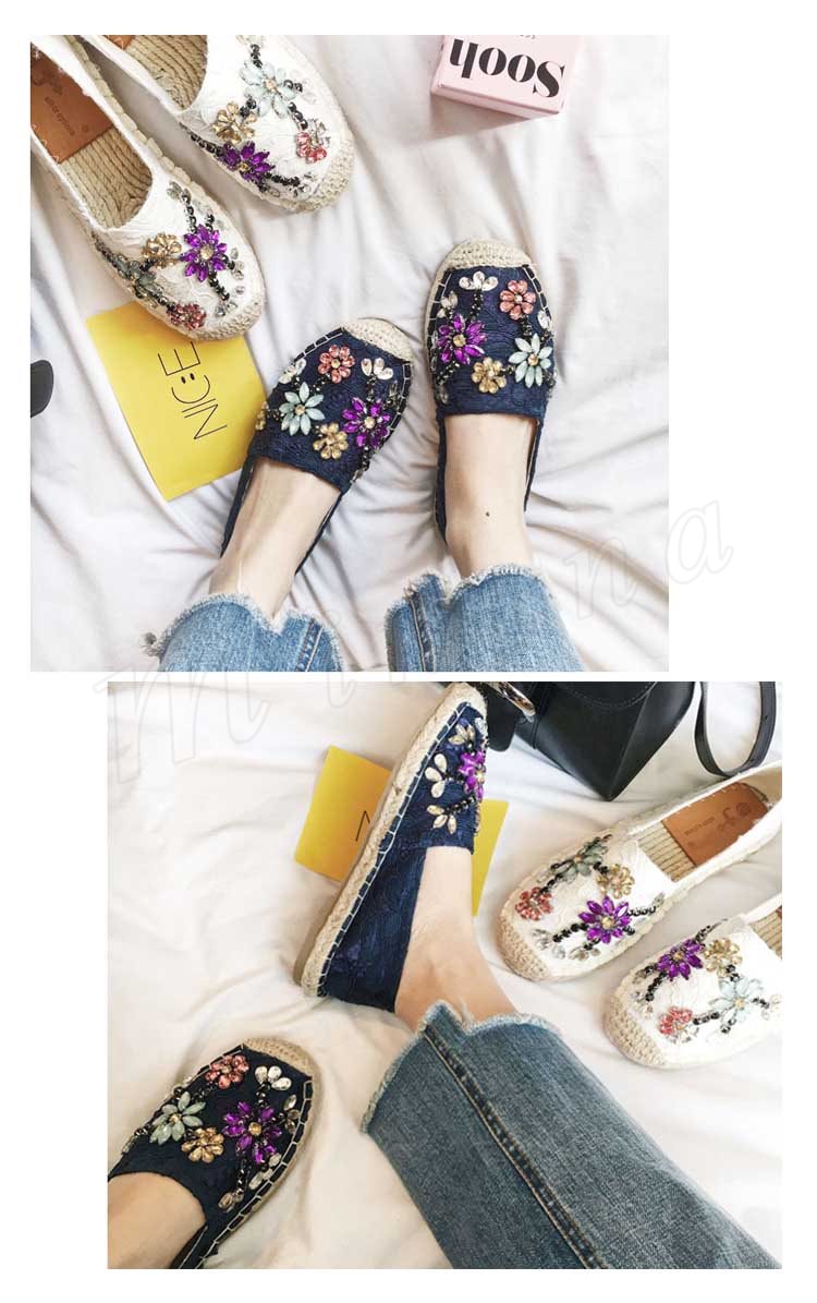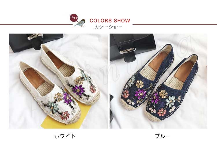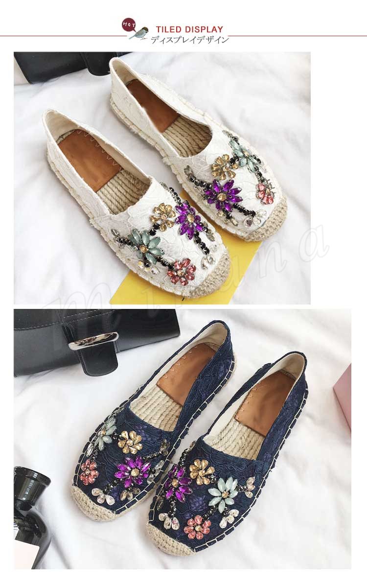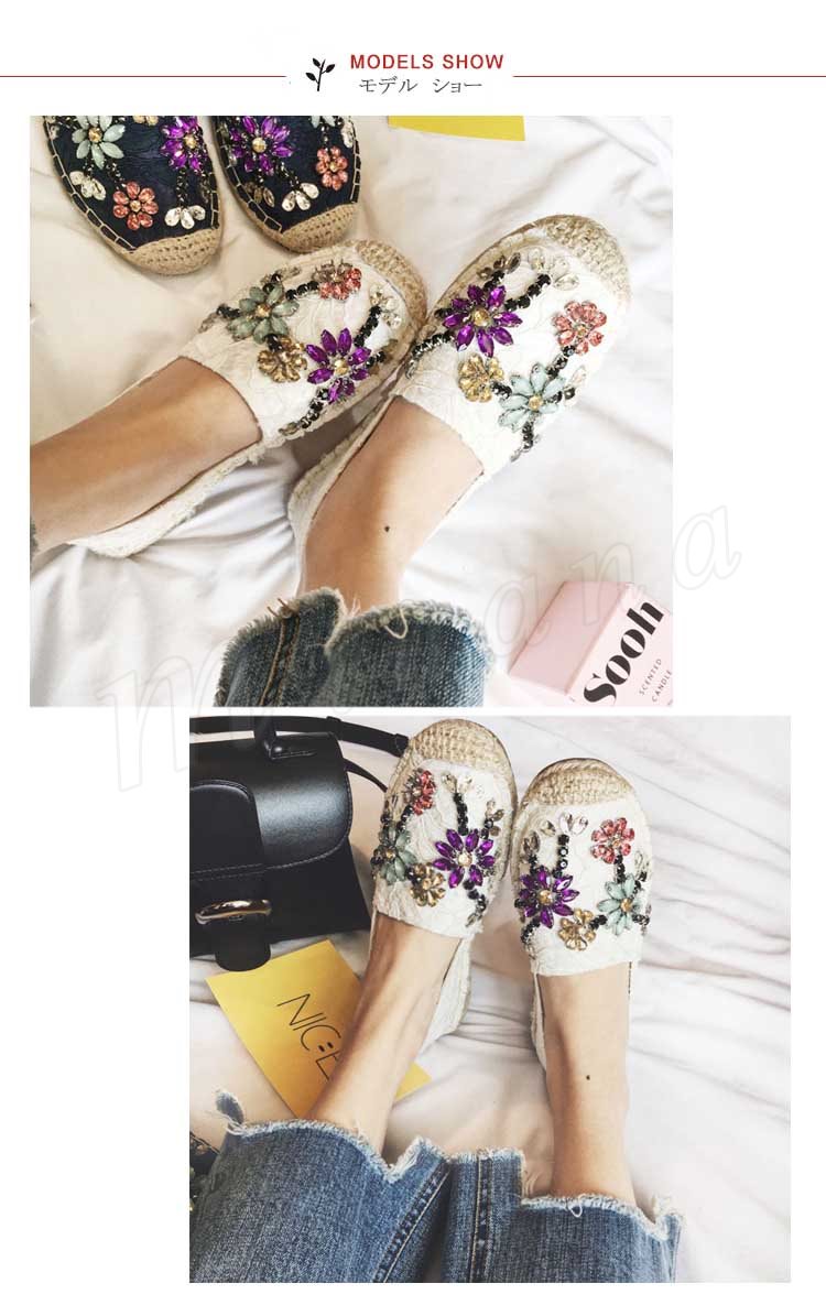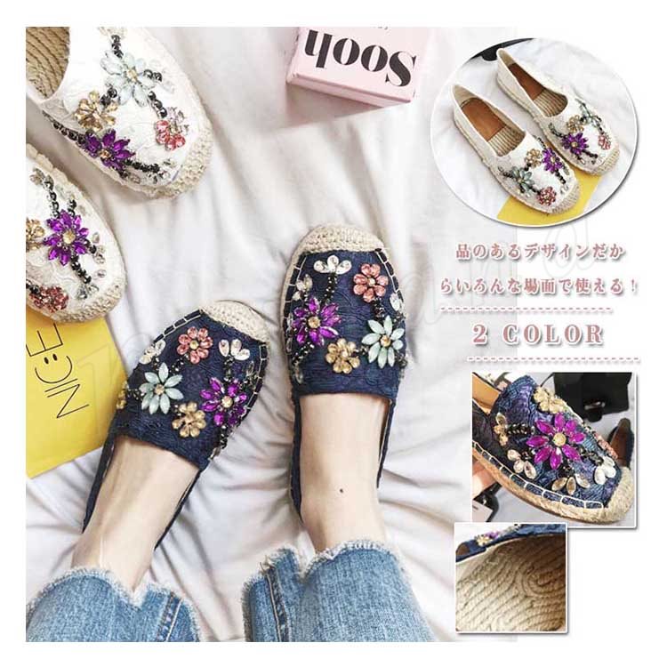 レース&フラワービジューでガーリーに履きこなす / スニーカー スリッポン レディース ぺたんこ 柔らかい レディース ビジューサンダル 靴 ローヒー