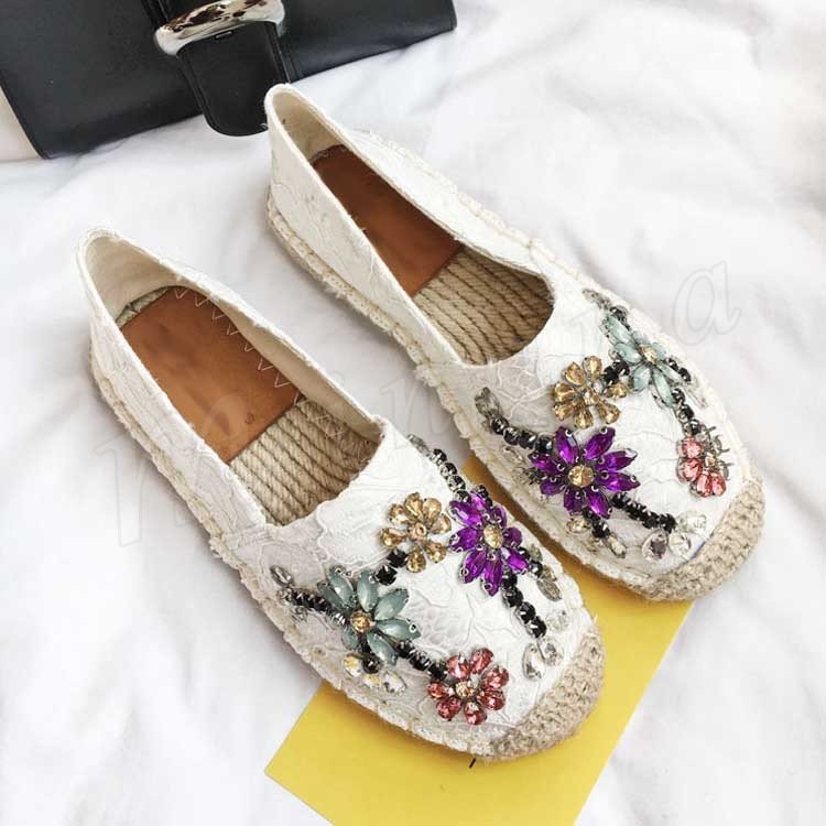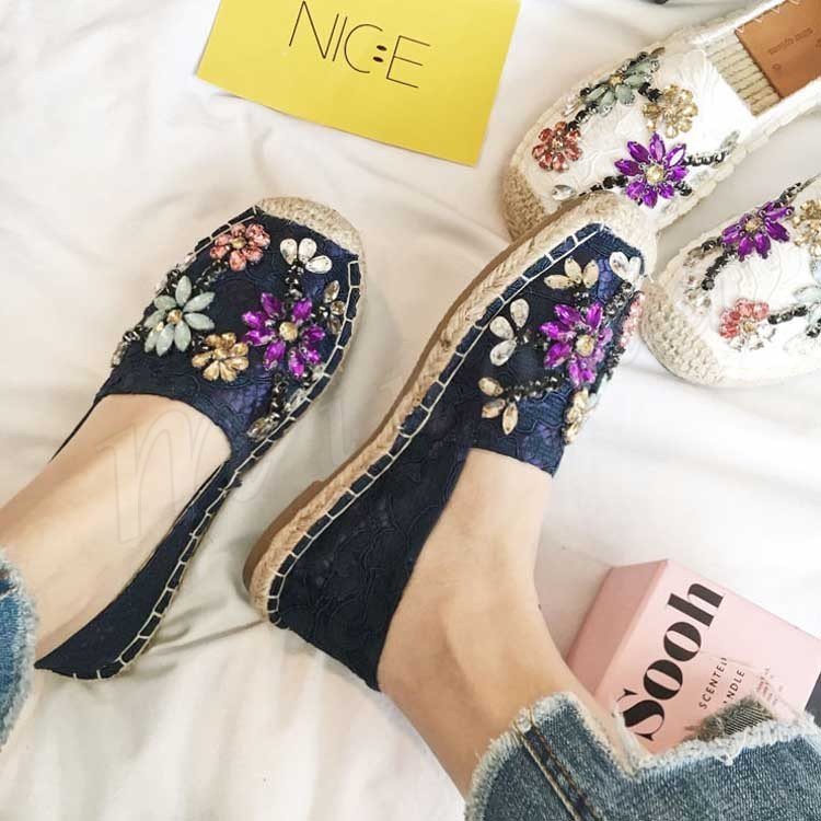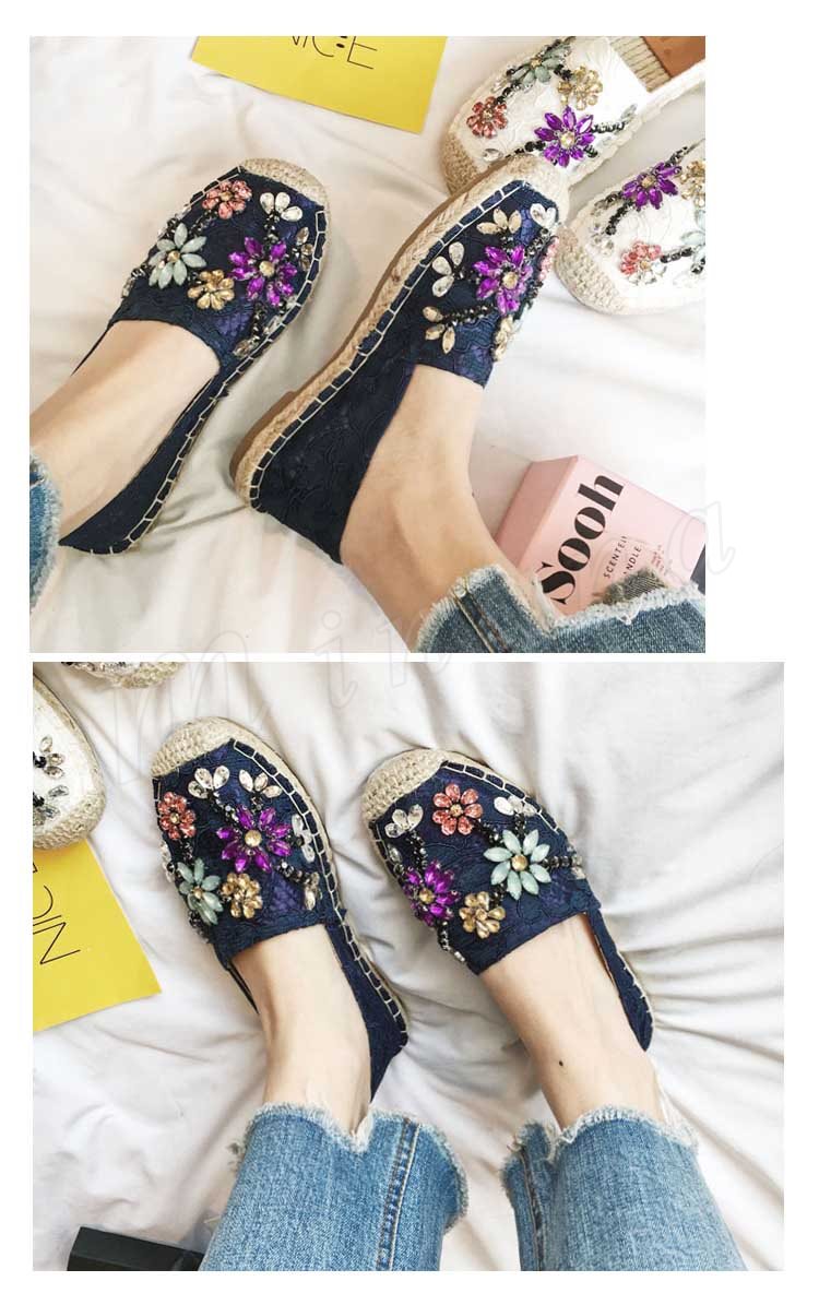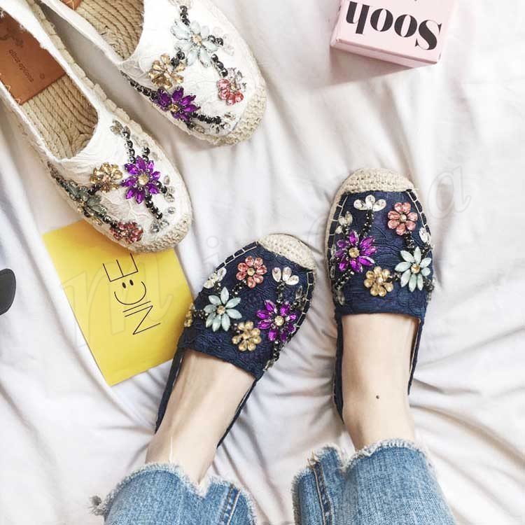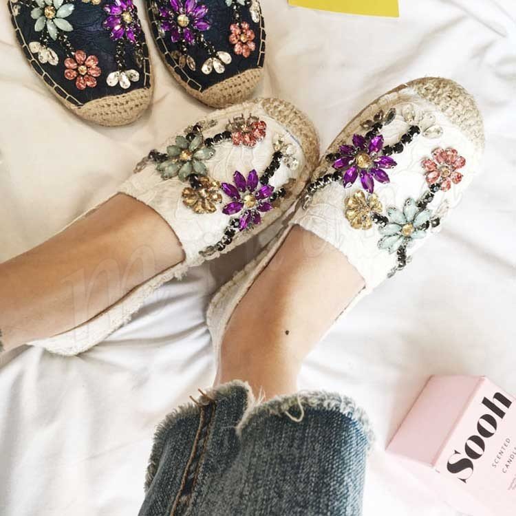 レース&フラワービジューでガーリーに履きこなす / スニーカー スリッポン レディース ぺたんこ 柔らかい レディース ビジューサンダル 靴 ローヒー