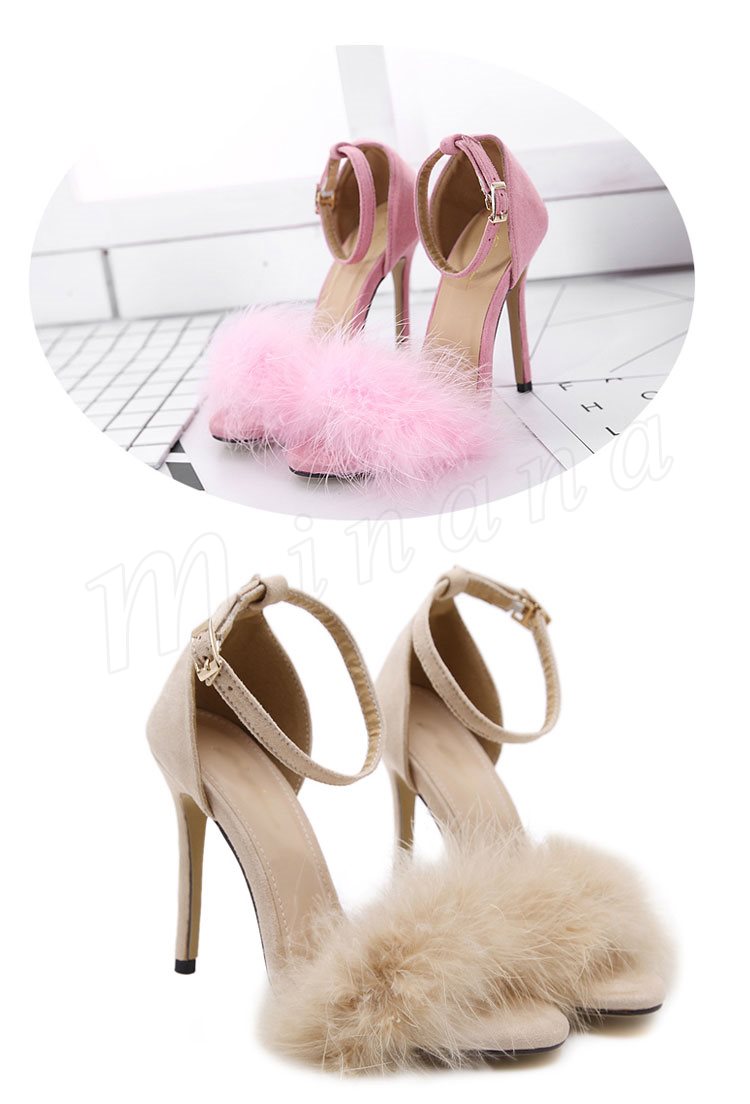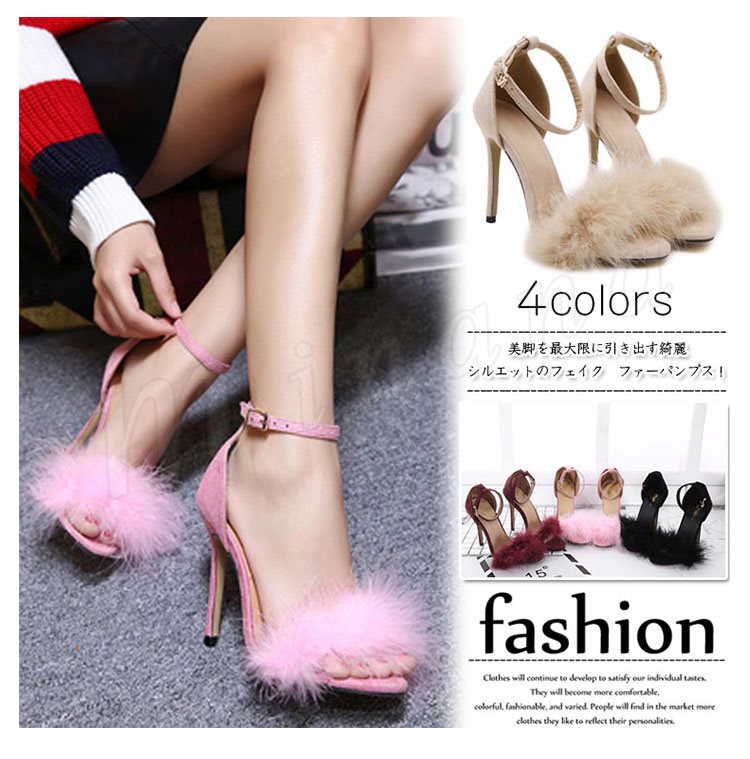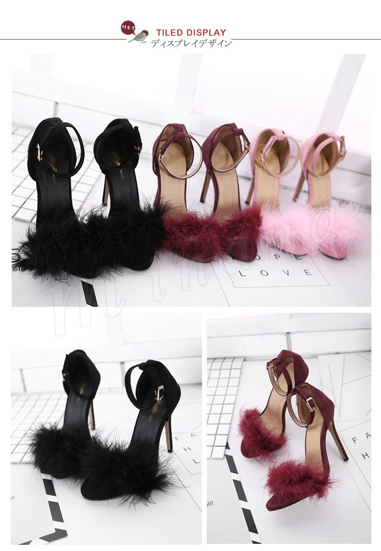 新作 ファー サンダル スエード タイプ レディース +8cmヒール