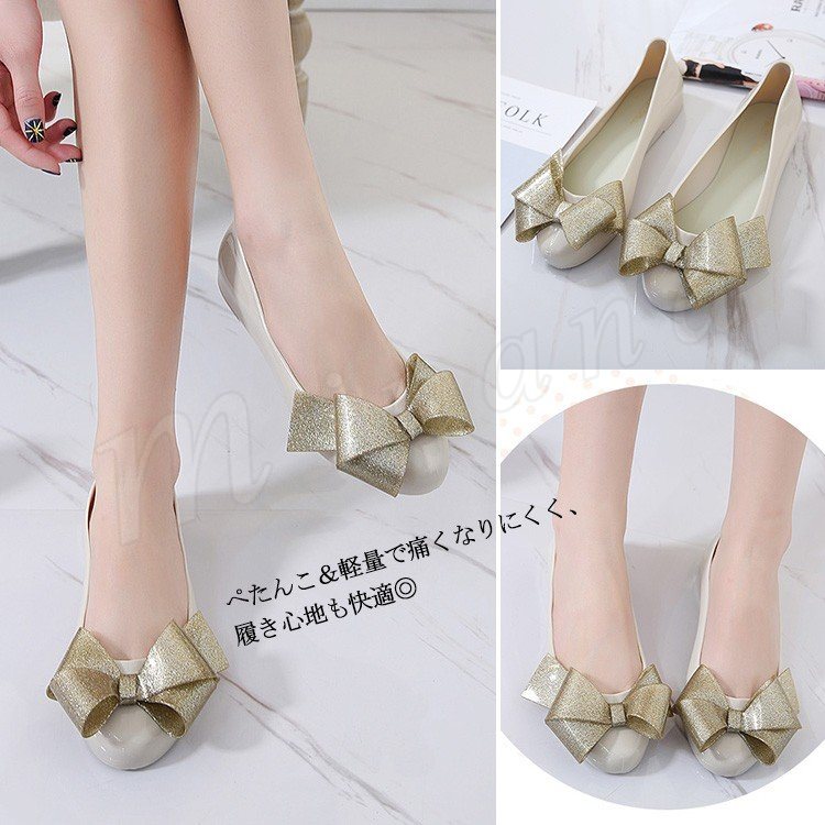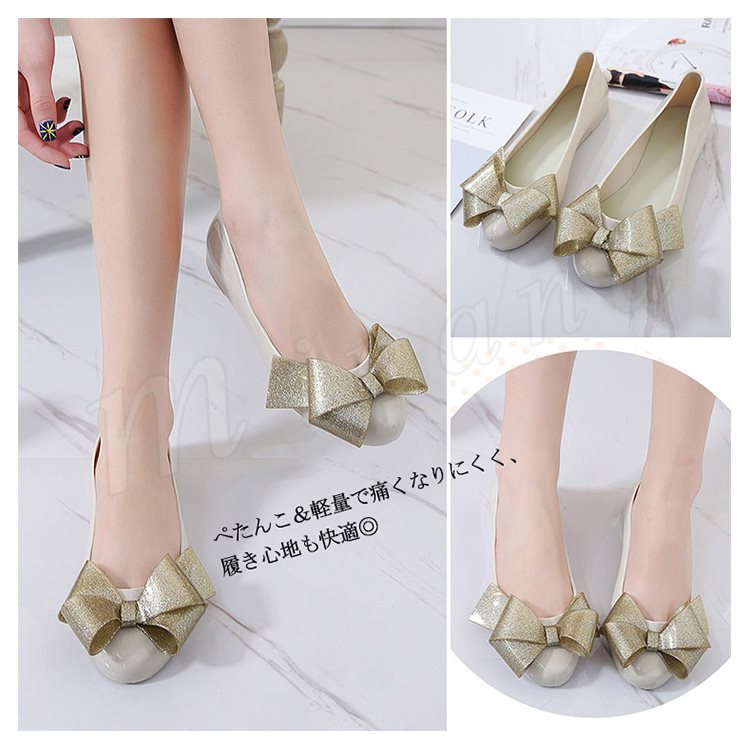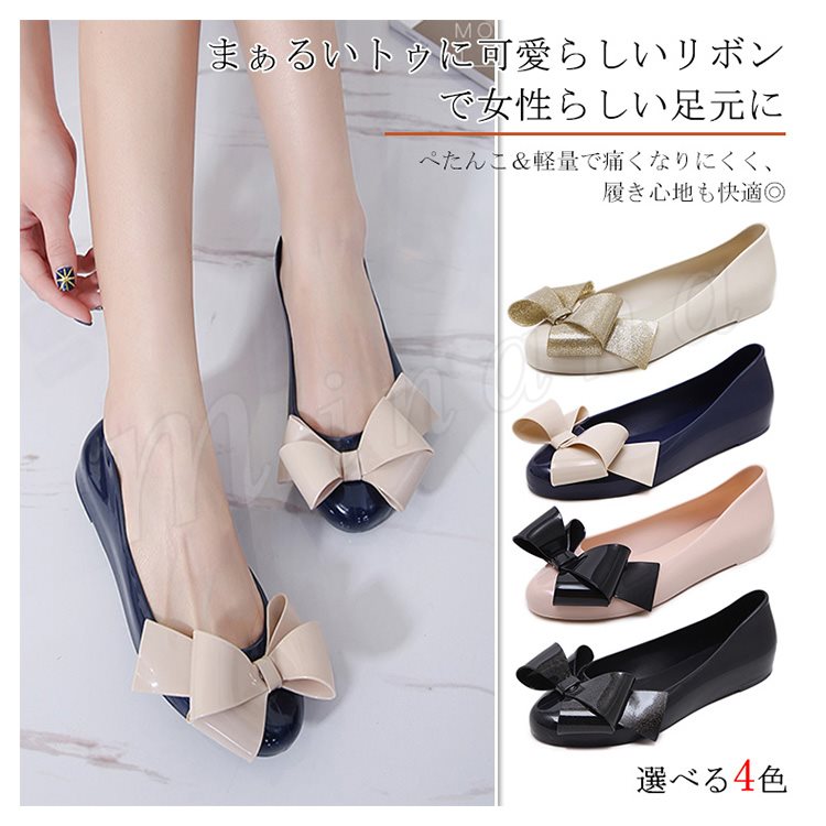 【全4色】快適な履き心地 リボンがかわいいローヒールフラットシューズ レディース 夏 フラットシューズ パンプス ラウンドトゥ ローヒール リボンシン