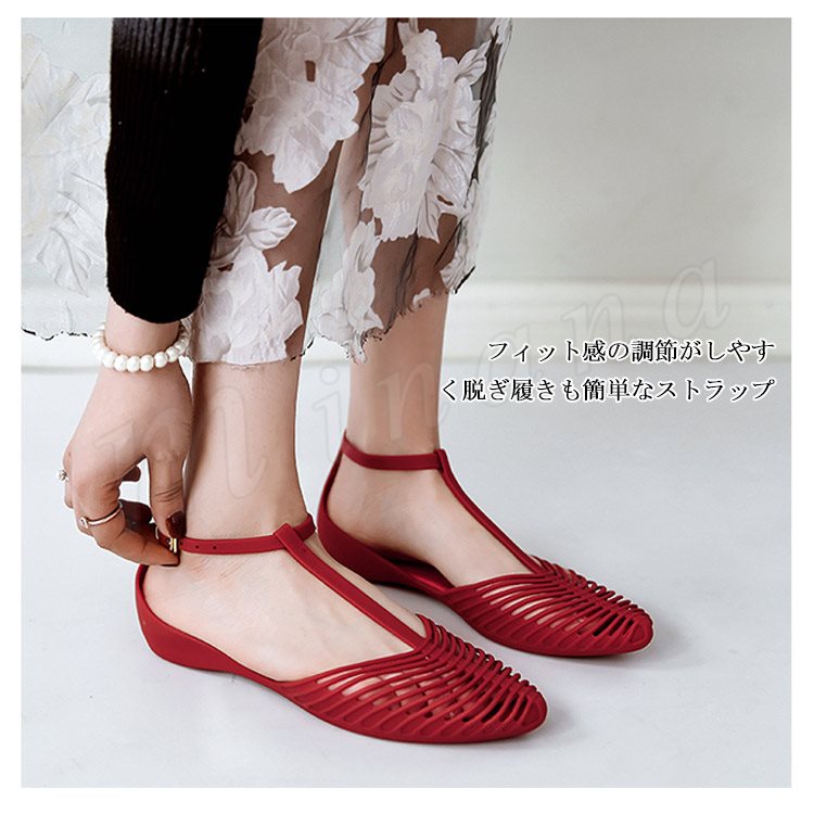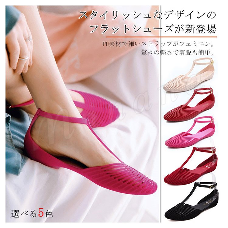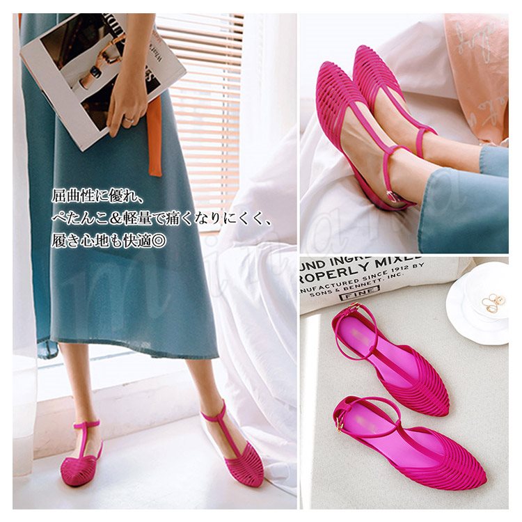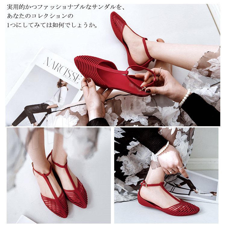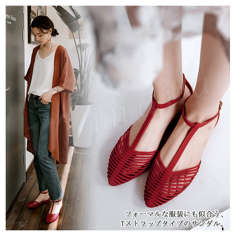 【全5色】ローヒールフラットシューズ レディース 夏 フラットシューズ パンプス Tストラップ付き ローヒール シンプル ビーチ サンダル 通勤 フォ