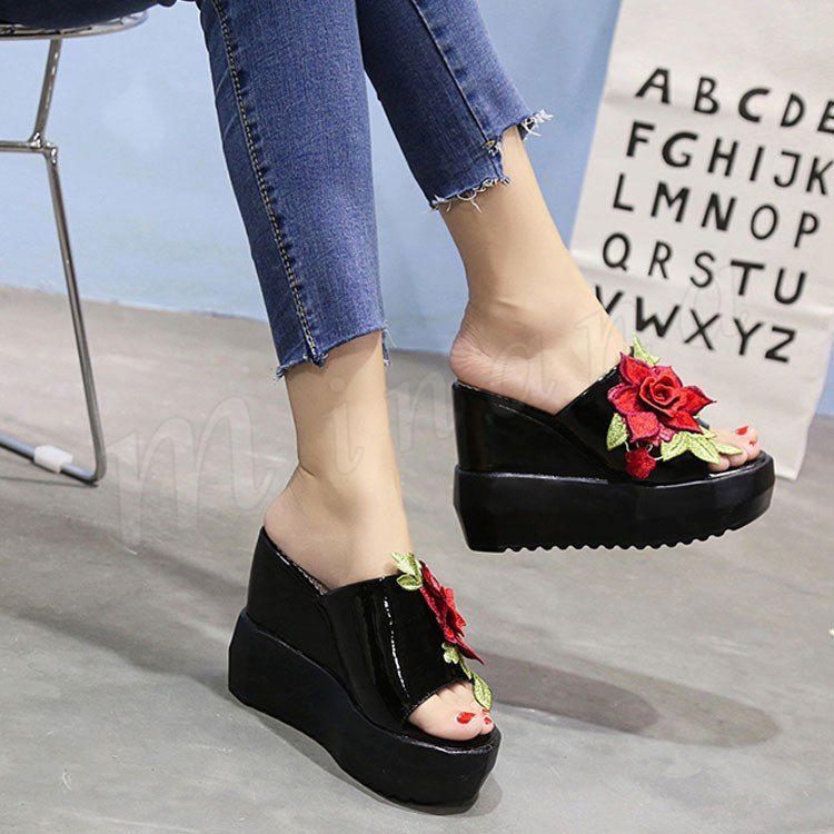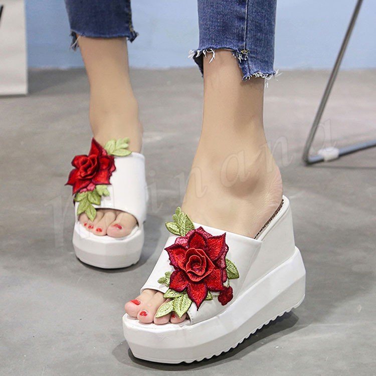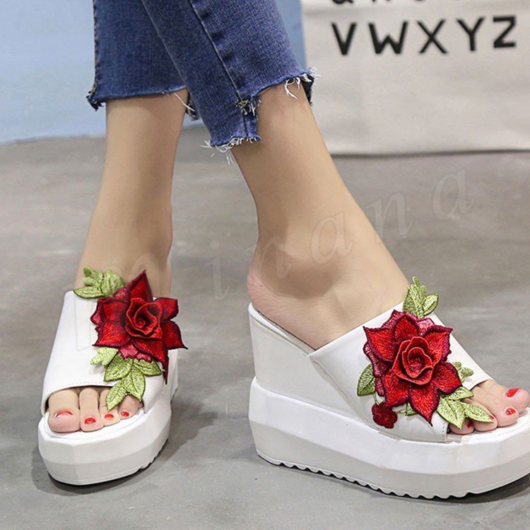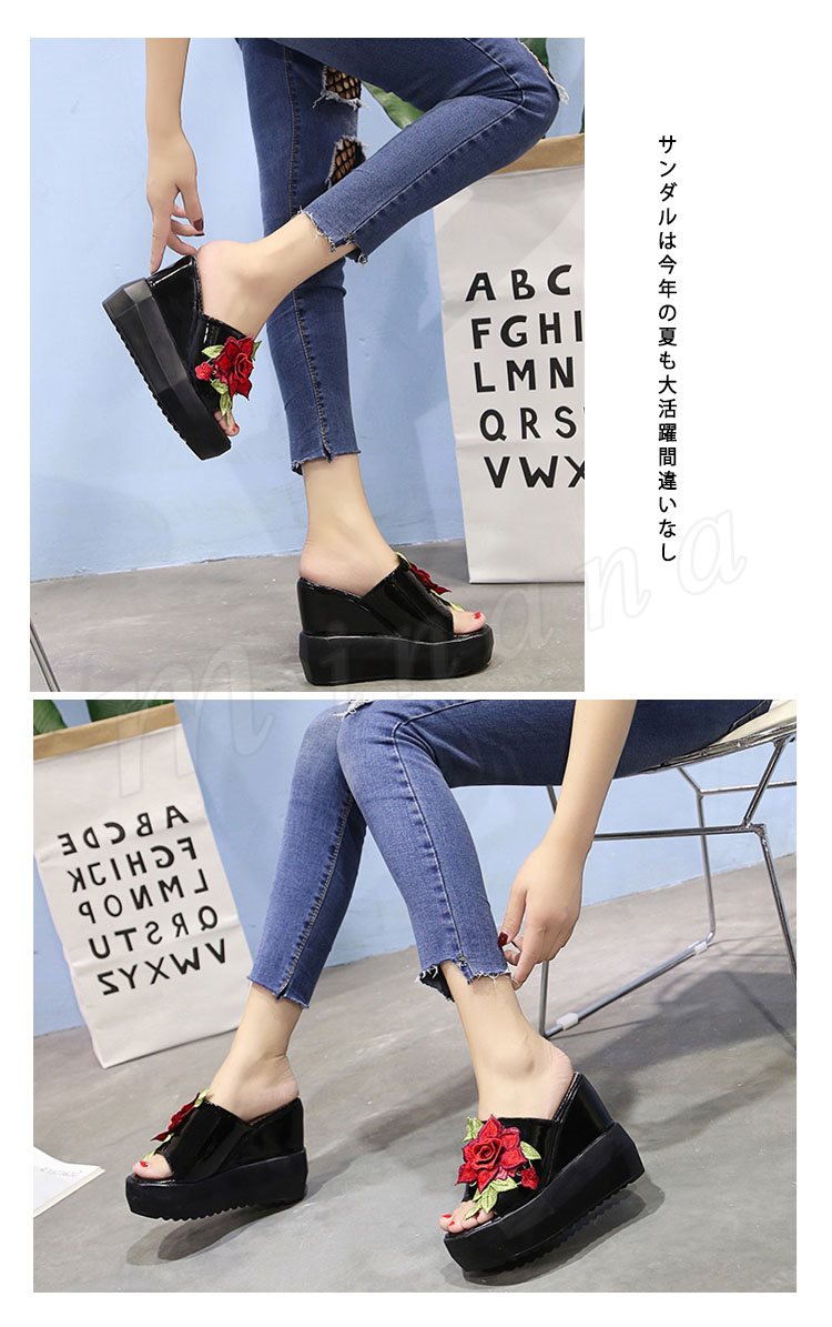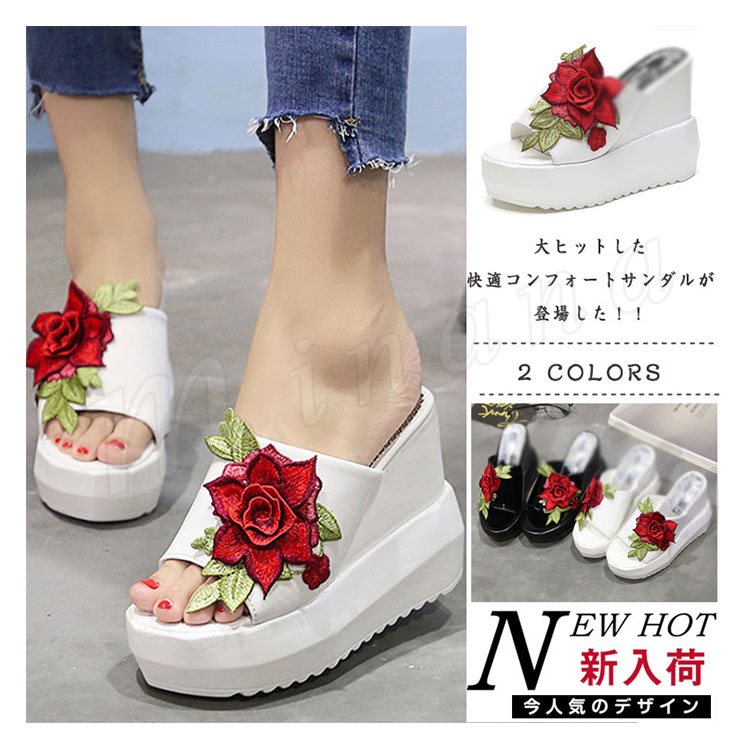 サンダル 厚底 レディース 厚底サンダル 刺繍サンダル 花柄 レディース シューズ 厚底 ウェッジヒール コンフォートサンダル夏 ストーム ヒール11
