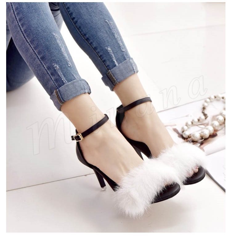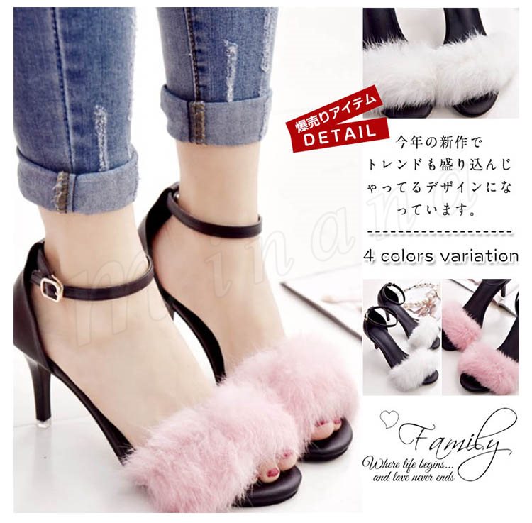 美脚サンダル サンダル レディース ヒール 痛くない ファーサンダル ぺたんこ ハイヒール コンフォートサンダル 秋サンダル ファー付き モコ